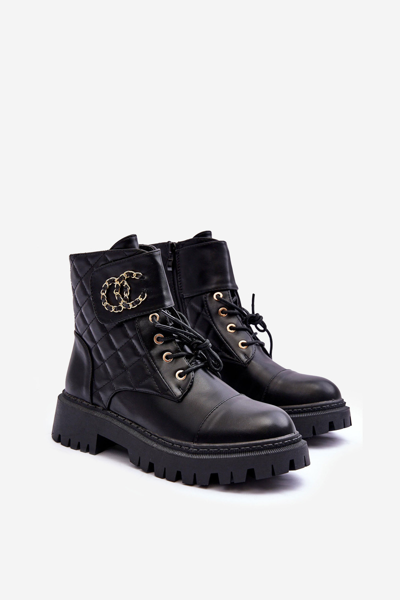 Boty ženy jsou umístěny na rovné, stabilní podpatku a platformě. Vyrobeno z ekologické kůže. Model je uzavřen na zip a má také šněrování. Na horní části jsou švy a silný pás s ozdobou. Špička je zesílená, vnitřek je ošetřen kožešinou. Skvělý model pro podzimní a zimní stylizace! Při výběru velikosti se řiďte tabulkou velikostí.