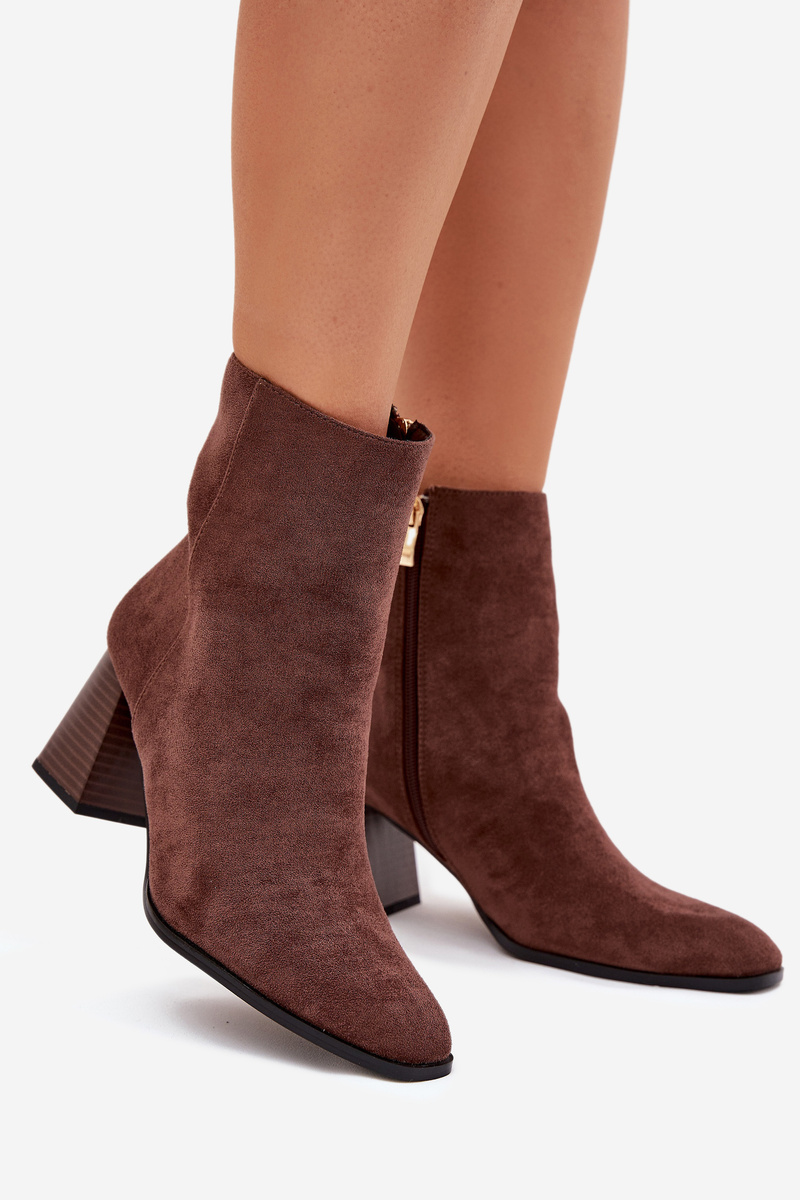 Dámské Boty Z Eko Semiše Na Podpatku Se Zipem Hnědé Zelita