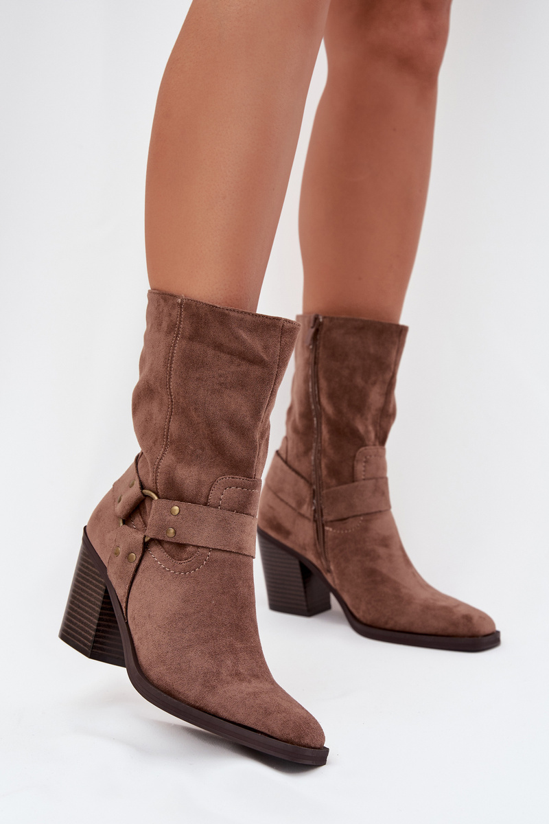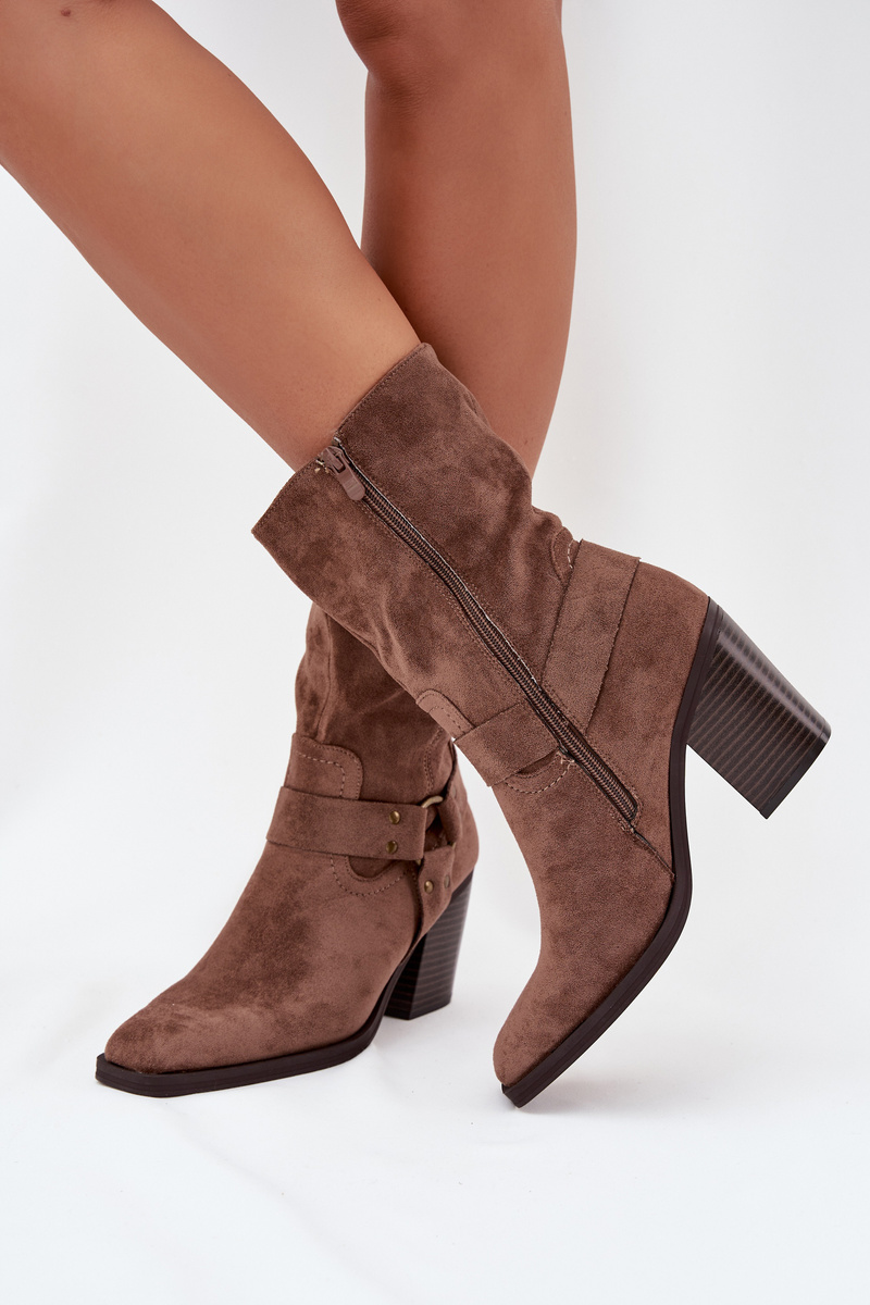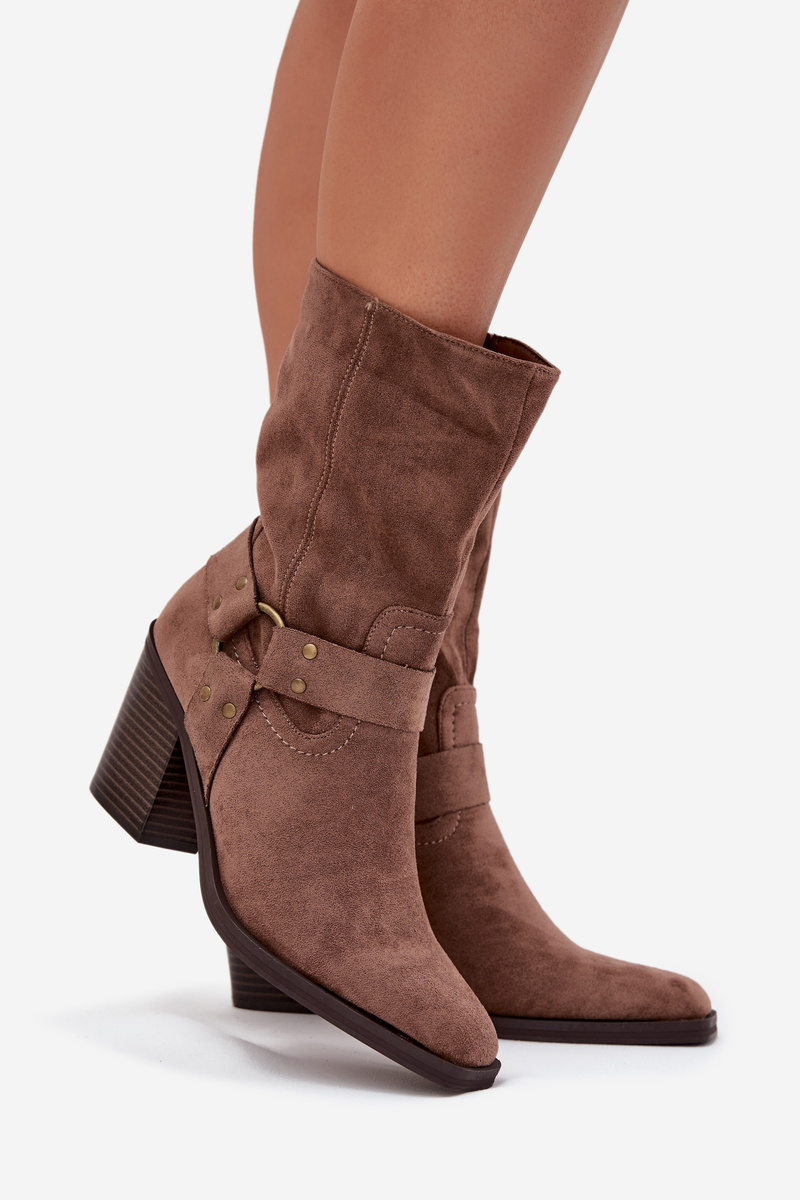 Dámské boty zateplené na podpatku s pásky a ozdobným detailem hnědé Neria