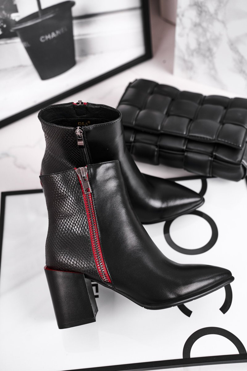 Klasické boty v krásném střihu. Boty umístěné na zdobeném sloupku střední výšky. Boty vyrobené výhradně z ekologické kůže, hladké a se zvířecím potiskem. Na vnější straně svršku je velký zip s červeným akcentem, který je krásným doplňkem. Druhý posuvník nám usnadní nasazení. Interiér je pokryt deku na boty, která nás v chladnějších dnech zahřeje. Při výběru velikosti použijte tabulku velikostí.