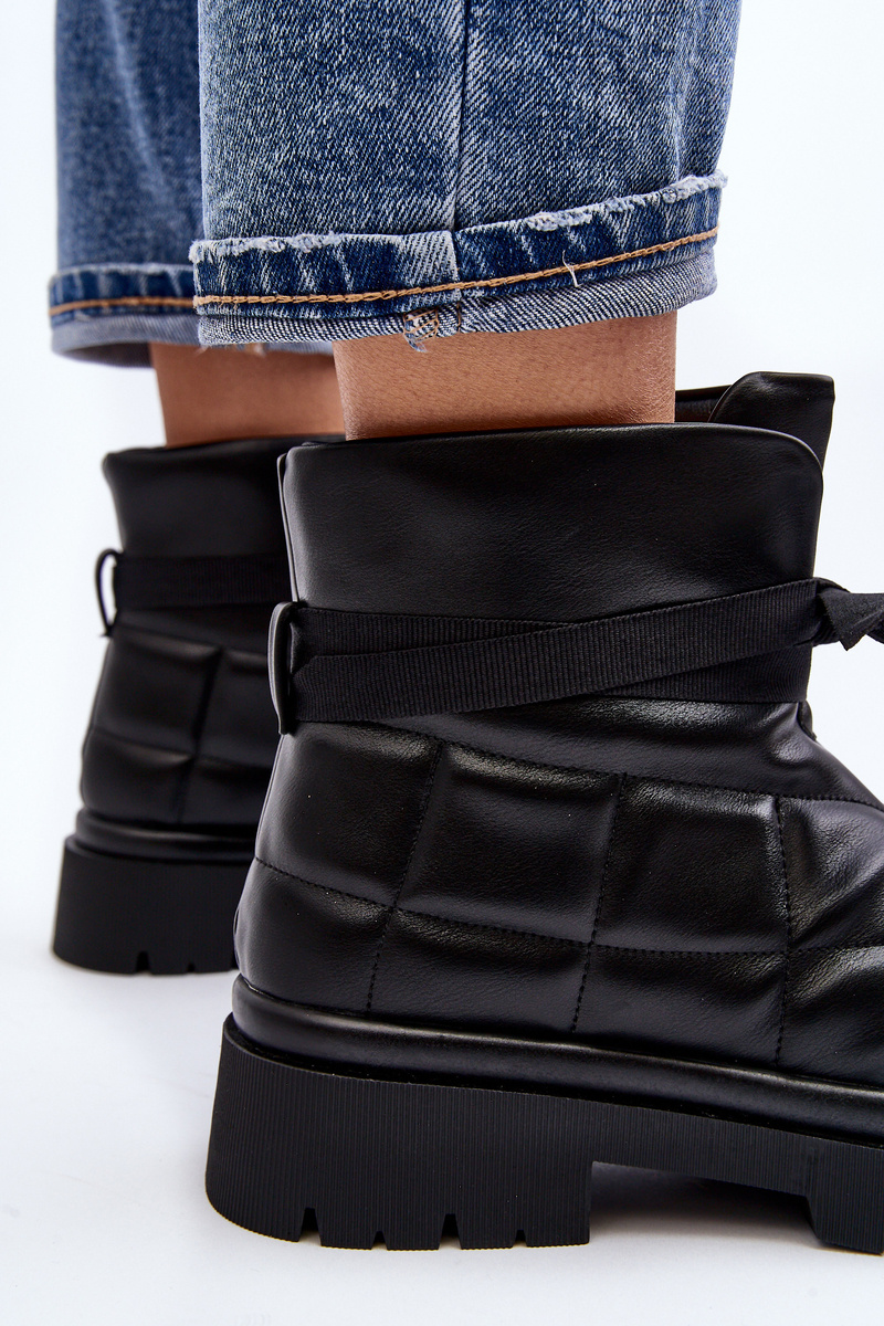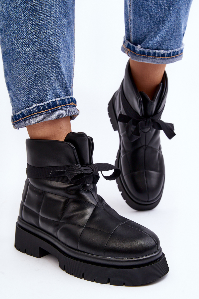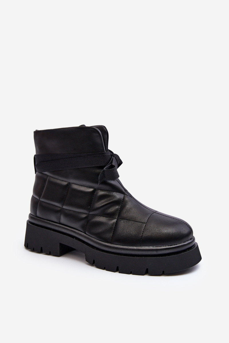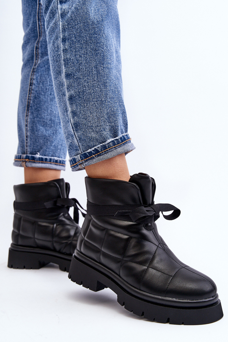 Dámské černé kotníčkové boty s prošíváním a šněrováním Bizzanti