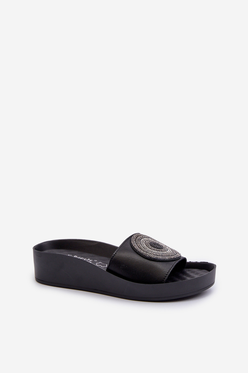 Dámské černé kožené žabky s ozdobou S.Barski KV27-019