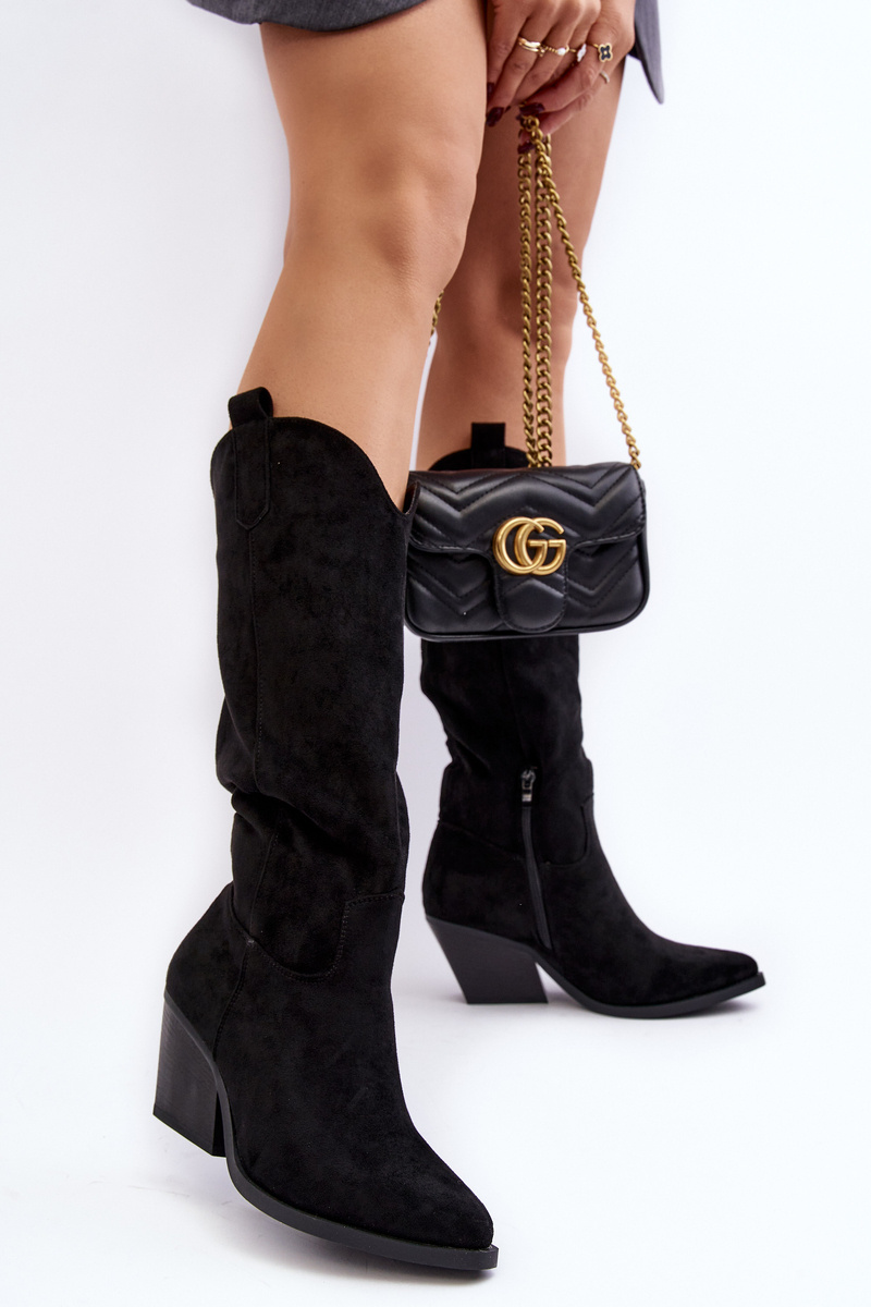 Dámské cowboyové kozačky na podpatku před koleno černé Oppore