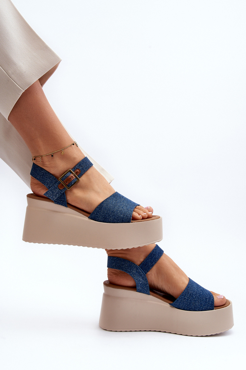 Dámské sandály vyrobené z textilního materiálu. Vsazeny na klíně a platformě, co jim nejen dodává módní vzhled, ale také zajišťuje stabilitu během chůze. Zapínají se na nastavitelný popruh se sponou, snadno si je přizpůsobíte své noze. Při výběru velikosti se řiďte tabulkou velikostí.