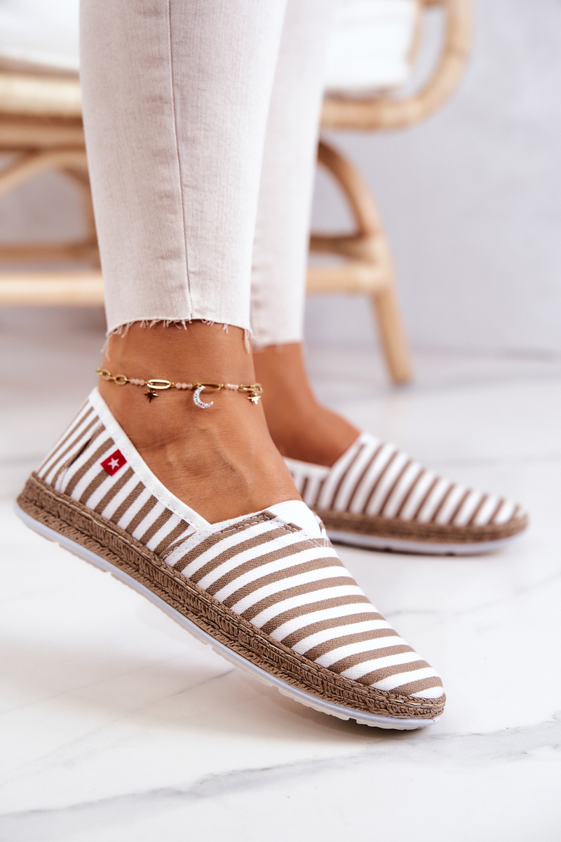 Dámské espadrilky Big Star Slip-on Stripes FF276029 Béžová
