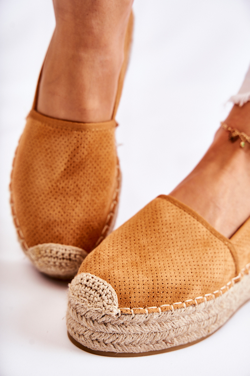 Krásné espadrilky s masivní, tkanou platformou a protiskluzovou podrážkou. Vyrobeno z ekologického semiše. Mají kulatou špičku. Ideální pro boho stylizace. Vložka se postará o vaše pohodlí při celodenním používání. Espadrilky mají také tuhou patu. Svršek espadrilek je perforovaný, díky čemuž jsou boty vzdušné. Při výběru velikosti použijte tabulku velikostí.