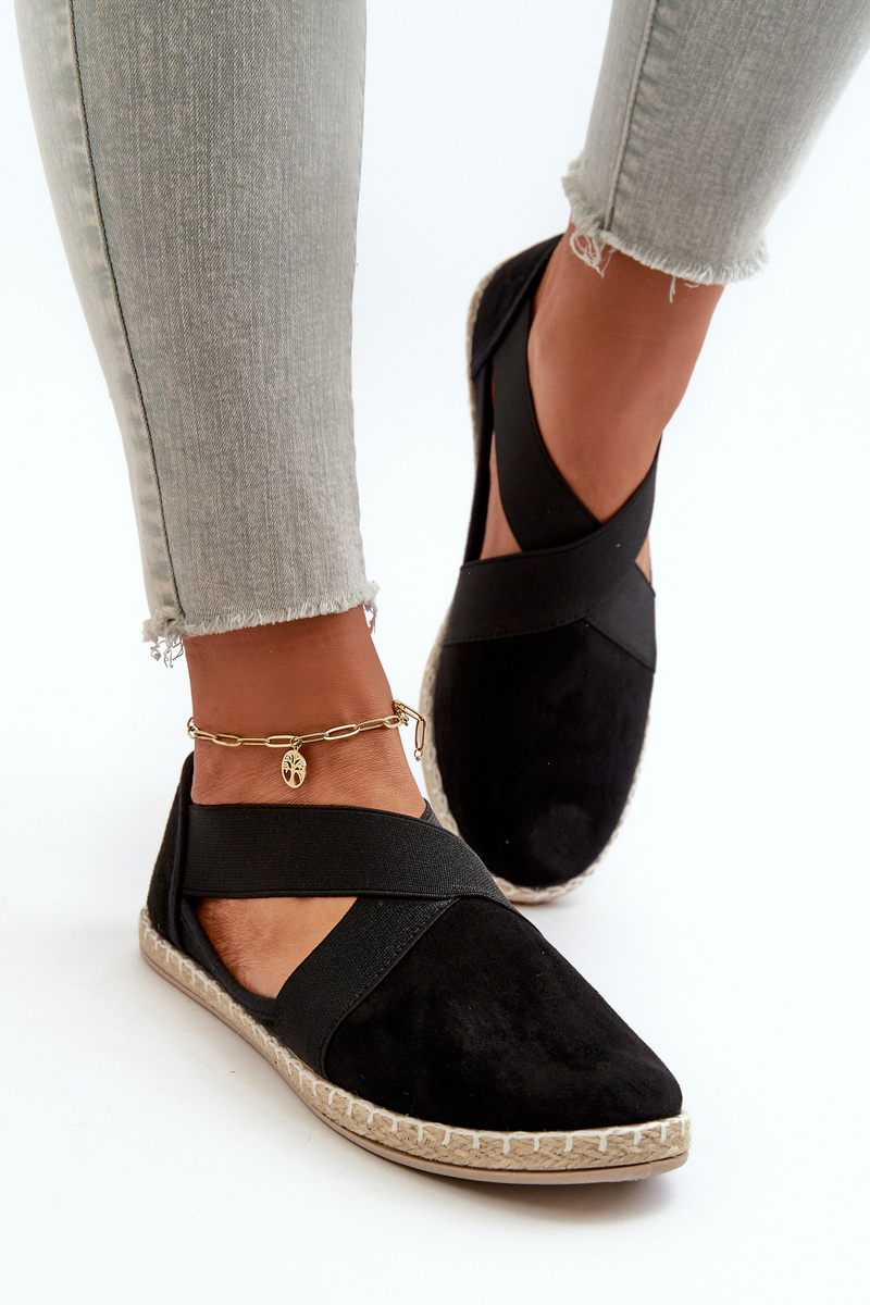 Dámské Espadrily S Elastickými Pásky Z Ekologického Semiše Černé Phaedrana