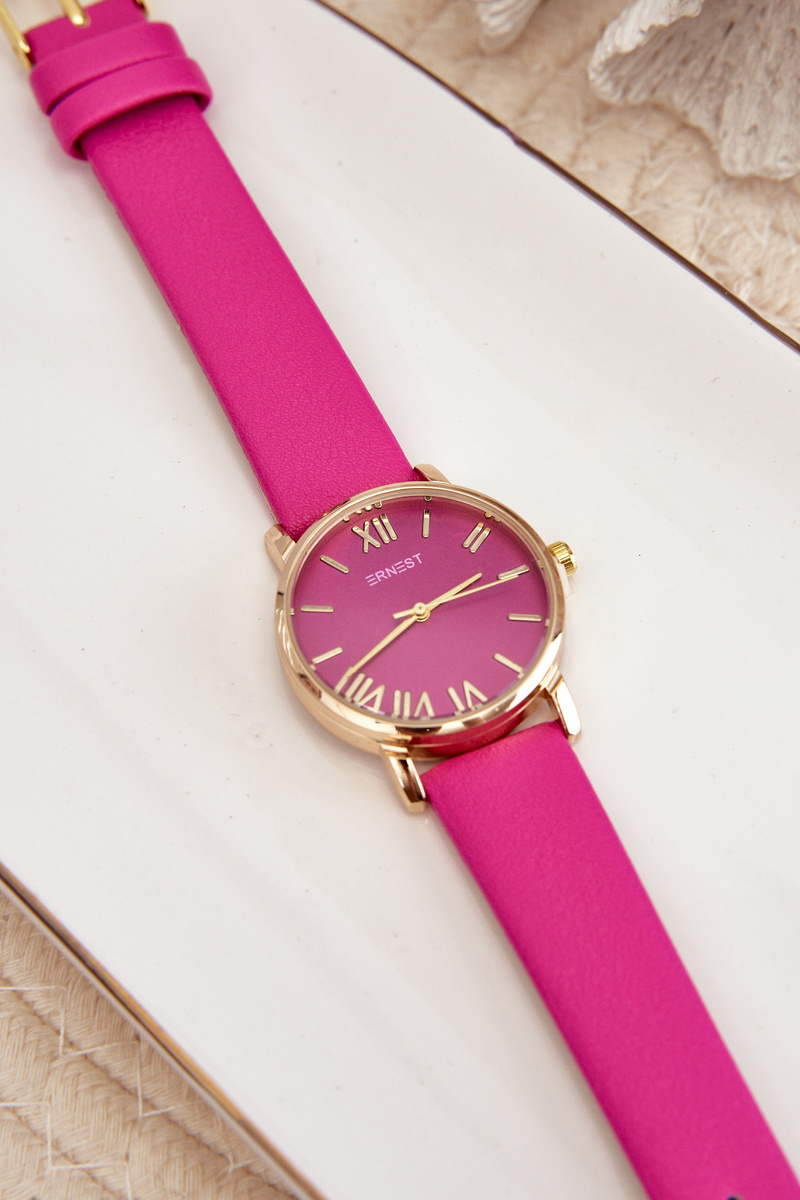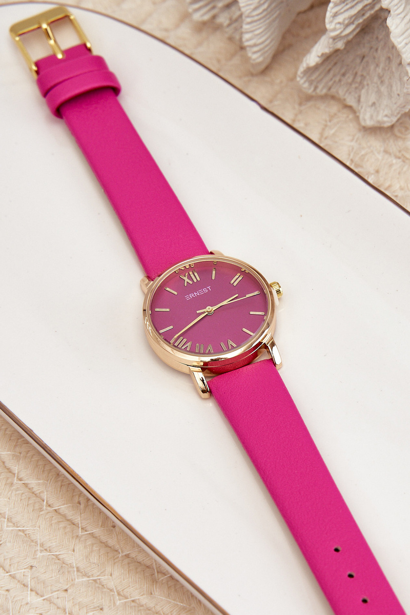 Dámské hodinky značky Ernest. Řemínek vyrobený z ekologické kůže. Jednoduchý, ale výjimečný tvar těchto hodinek je činí ideálním doplňkem jak pro každodenní, tak i formálnější příležitosti. Díky své univerzálnosti a eleganci vždy bude jemným doplňkem každého oblečení.