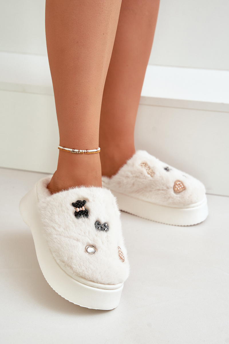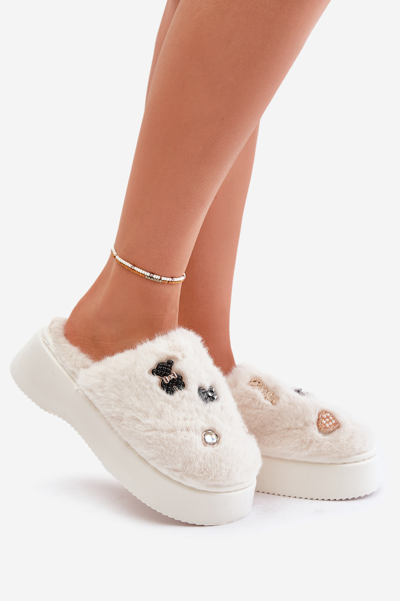 Dámské Fuzzy Pantofle Na Silné Podešvi S Doplňky Světle Béžové Zintoria