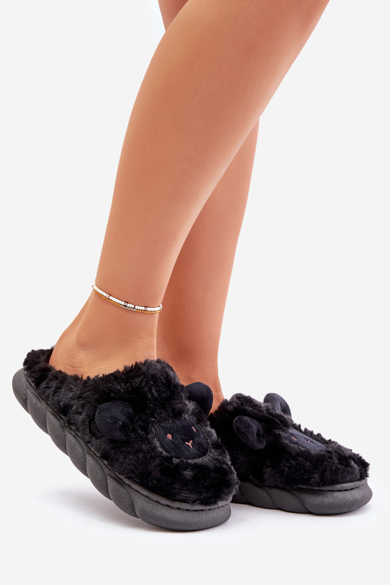 Dámské Fuzzy Pantofle S Ovčím Motivem Černé Phaeia