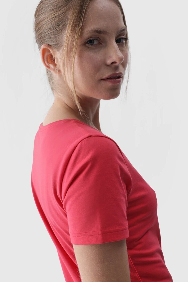 Dámské tričko se skvěle hodí jako prvek do každodenního casual i sportovního stylu. Má přiléhavý slim střih, který se přizpůsobuje tělu. Pletenina single jersey s jednostranně hladkým povrchem zajišťuje, že tričko je elastické a pohodlné na nošení. Dámské tričko bez potisku je měkké na dotek a dobře se tvaruje. Neprůhledné a zajišťuje trvanlivost a pohodlí při celoročním nošení. Dámské tričko 4F je vyrobeno ze 95% bavlny, což z něj činí měkké, odolné a příjemné na dotek. Díky přídavku elastanu (5%) je mírně pružné a pohodlně se tvaruje na siluetě. Kulatý výstřih je zakončen mírným žebrováním.