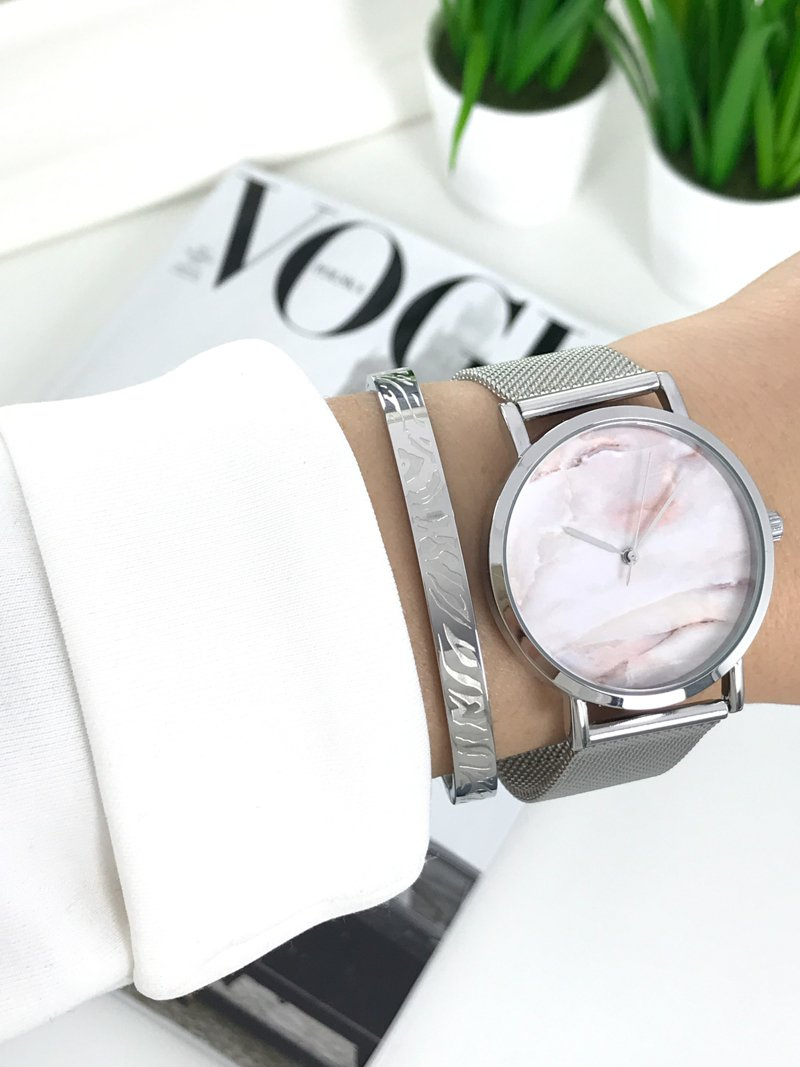 Sophie watch od Ernestu je dárkem vytvořeným pro ženy, které milují vkusné doplňky k jejich stylizacím. Hodinky mají ploché sklo, které v kombinaci s krásným bílým mramorovaným štítem dává neobvyklý vzhled. Mesh náramek vyrobený z chirurgické oceli s možností snadného a rychlé úpravy. Vysoká kvalita mechanismu a obálky.