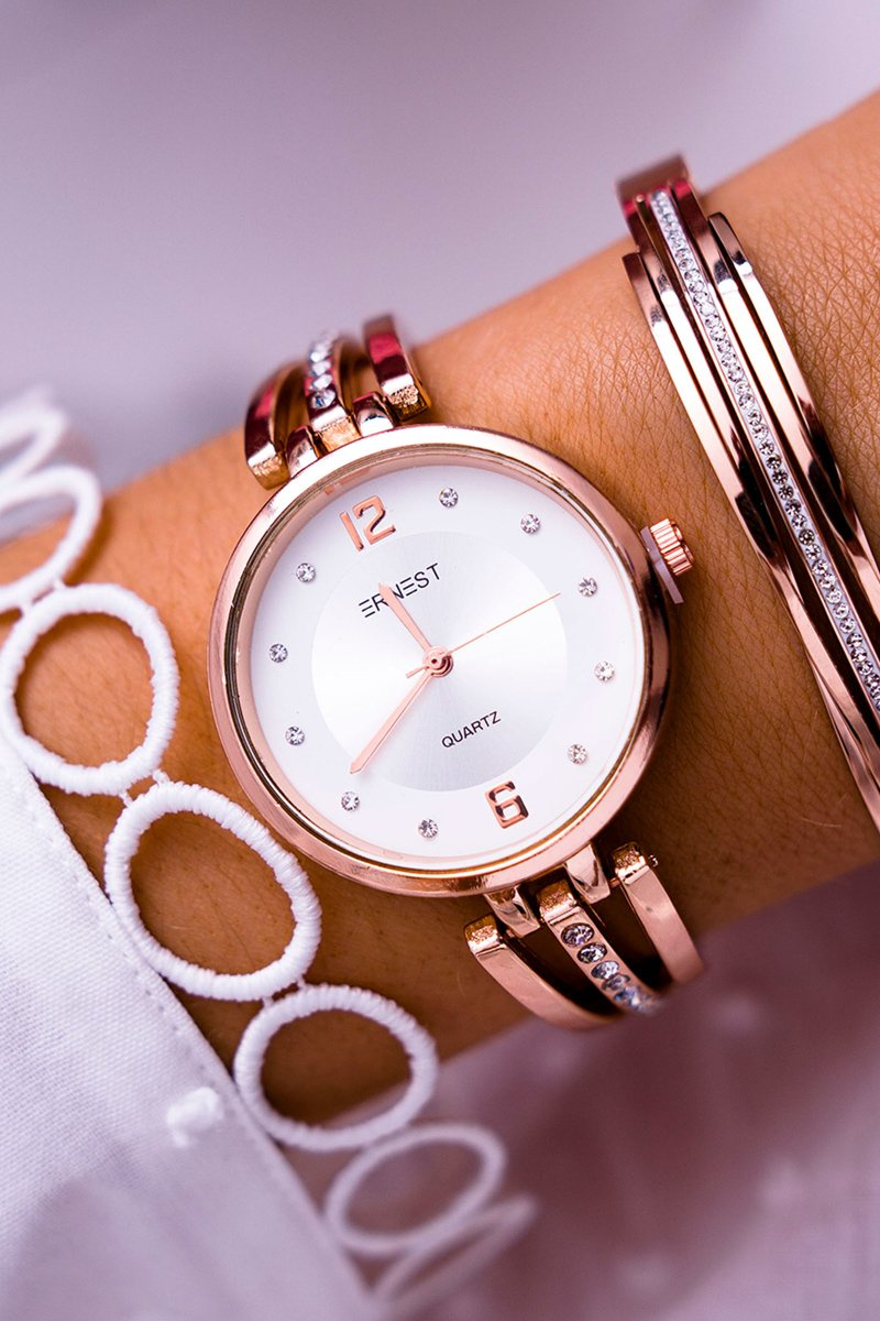 Dámské Hodinky Ernest Zirkony Růžové Zlaté Alendi
