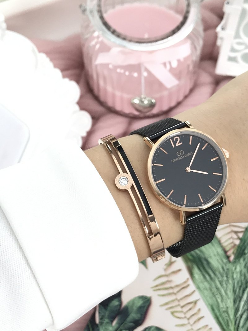Hodinky René od Giorgio & Dario jsou dárkem pro ženy, které milují vkusné doplňky nejen k elegantním, ale i každodenním stylizacím. Hodinky mají ploché sklo, díky němu vypadá ještě lépe na ruce a zároveň je čitelnější. Náramek ve tvaru oka v barvě ciferníku a obálky ve zlatých barvách z chirurgické oceli s možností snadného a rychlé úpravy. Vysoká kvalita mechanismu a obálky.