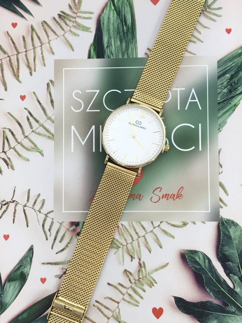 Hodinky René od Giorgio & Dario jsou dárkem pro ženy, které milují vkusné doplňky nejen k elegantním, ale i každodenním stylizacím. Hodinky mají ploché sklo, díky němu vypadá ještě lépe na ruce a zároveň je čitelnější. Náramek ve tvaru oka v barvě ciferníku a obálky ve zlatých barvách z chirurgické oceli s možností snadného a rychlé úpravy. Vysoká kvalita mechanismu a obálky.