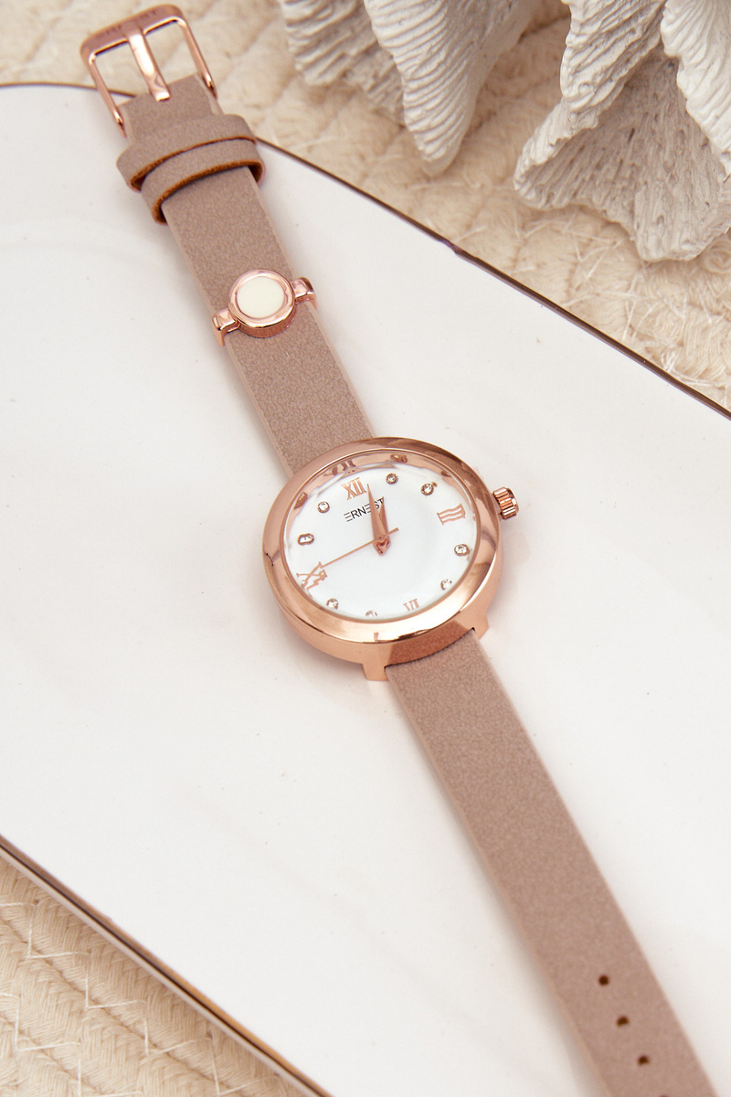 Dámské hodinky na tenkém ekologickém kůži páska béžový Ernest E62146