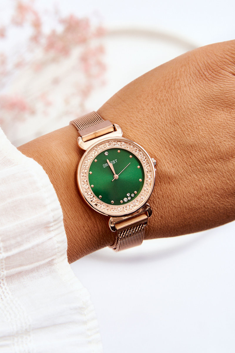 Dámské hodinky Se Zeleným štítem ERNEST Růžové zlato