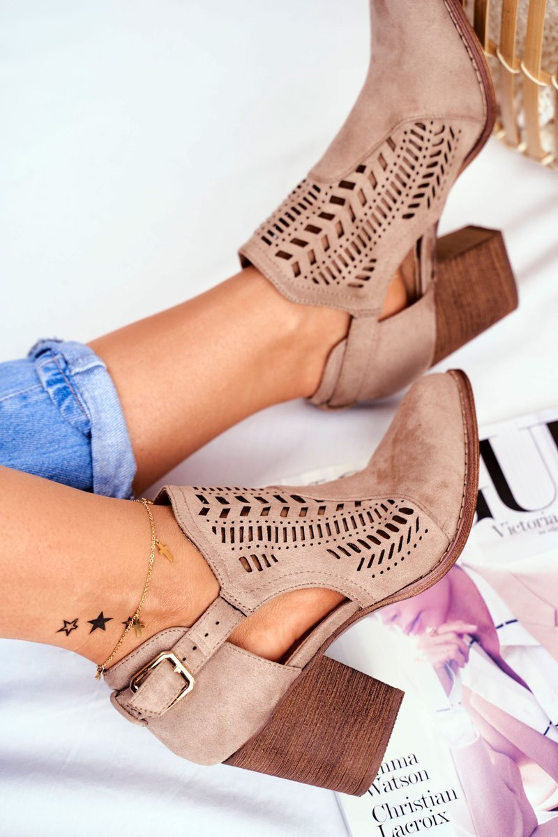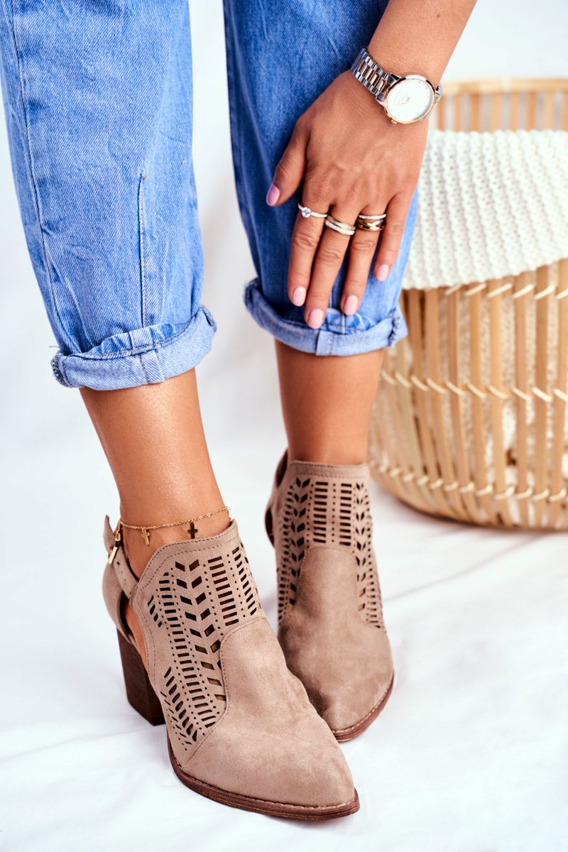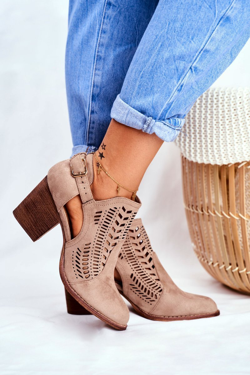 Dámské Jarní Boty Na Podpatku Semišové Béžové Velluci
