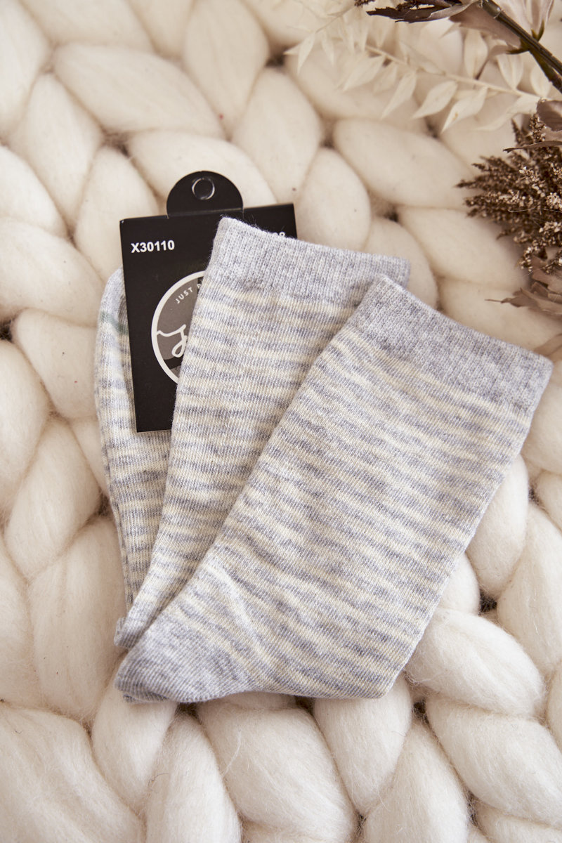 Dámské klasické bavlněné ponožky pruhované béžovo-šedé