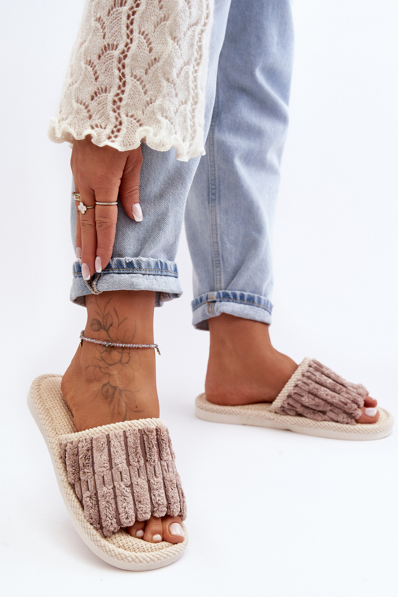 Pohodlné domácí pantofle s plochou, pryžovou podrážkou jsou ideální volbou pro chladnější dny. Vyrobené z měkkého umělého kožešinového materiálu poskytují teplo a pohodlí. Na špičce pantofle je roztomilá nášivka. Otevřené špičky. Skvělé na relaxaci doma! Při výběru velikosti se řiďte tabulkou velikostí.