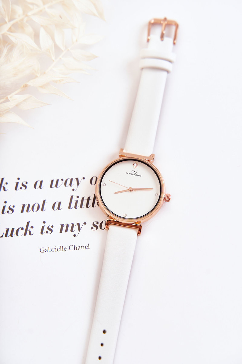 Dámské klasické hodinky na koženém řemínku Giorgio & Dario bíle