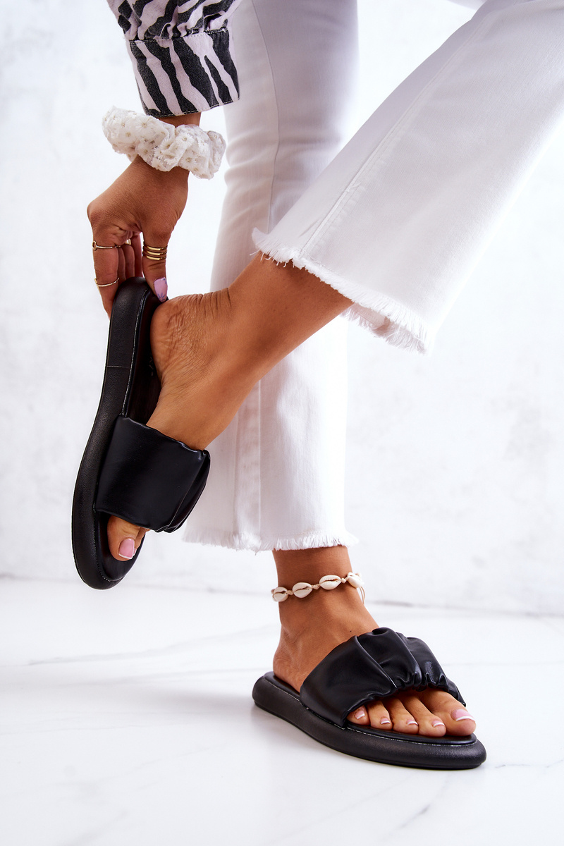 Elegantní dámské pantofle mají měkkou stélku z ekokůže. Elegantní volány z eko kůže boty vypadají opravdu báječně. Jemná platforma a podešev z plastu. Tyto pantofle doplní nejednu letní stylizaci! Skvěle se budou hodit k boho stylingu. Zaujměte svým vzhledem a kupte si je ještě dnes! Určitě si prohlédněte celou naši kolekci dámských pantoflí. Při výběru velikosti použijte tabulku velikostí.