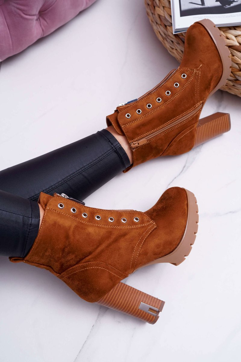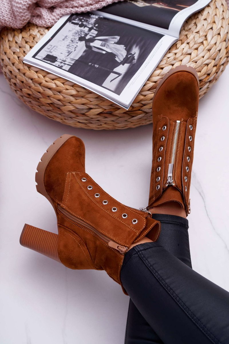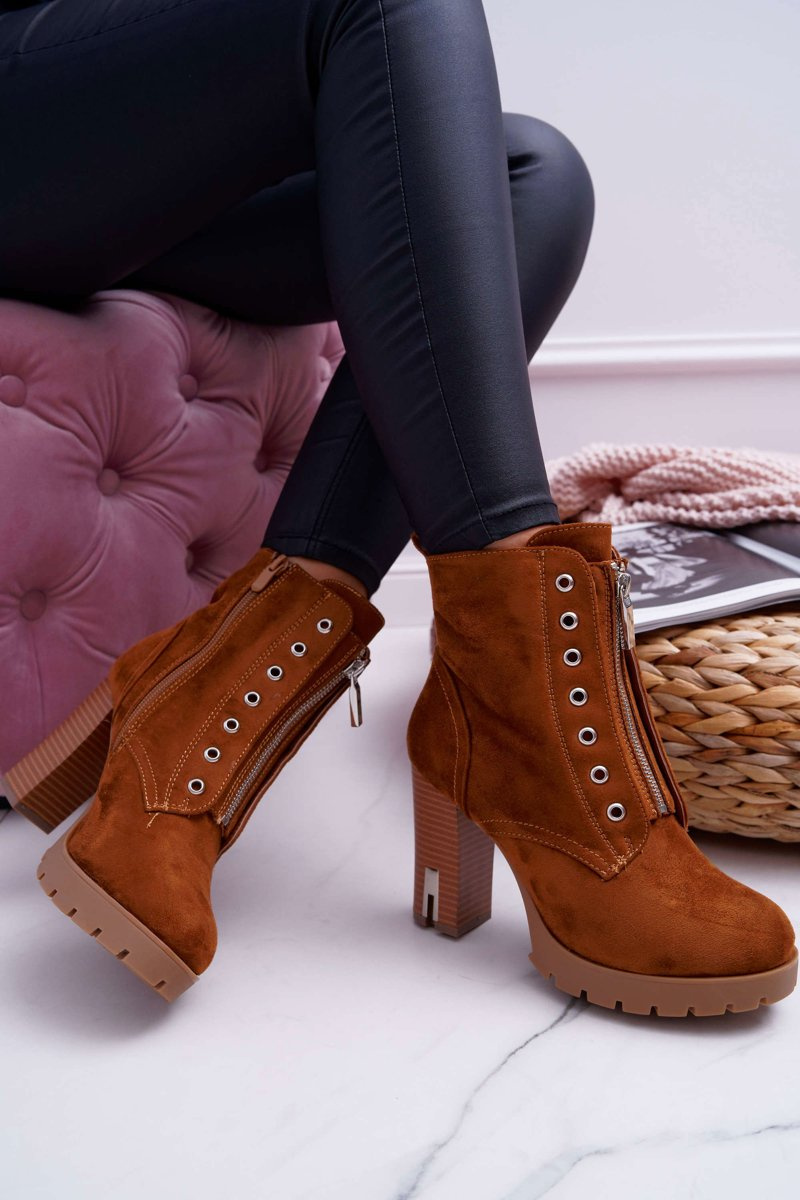 Dámské Koníkové Boty Na Podpatku S Ozdobným Zipem Semišové Camel Imagine