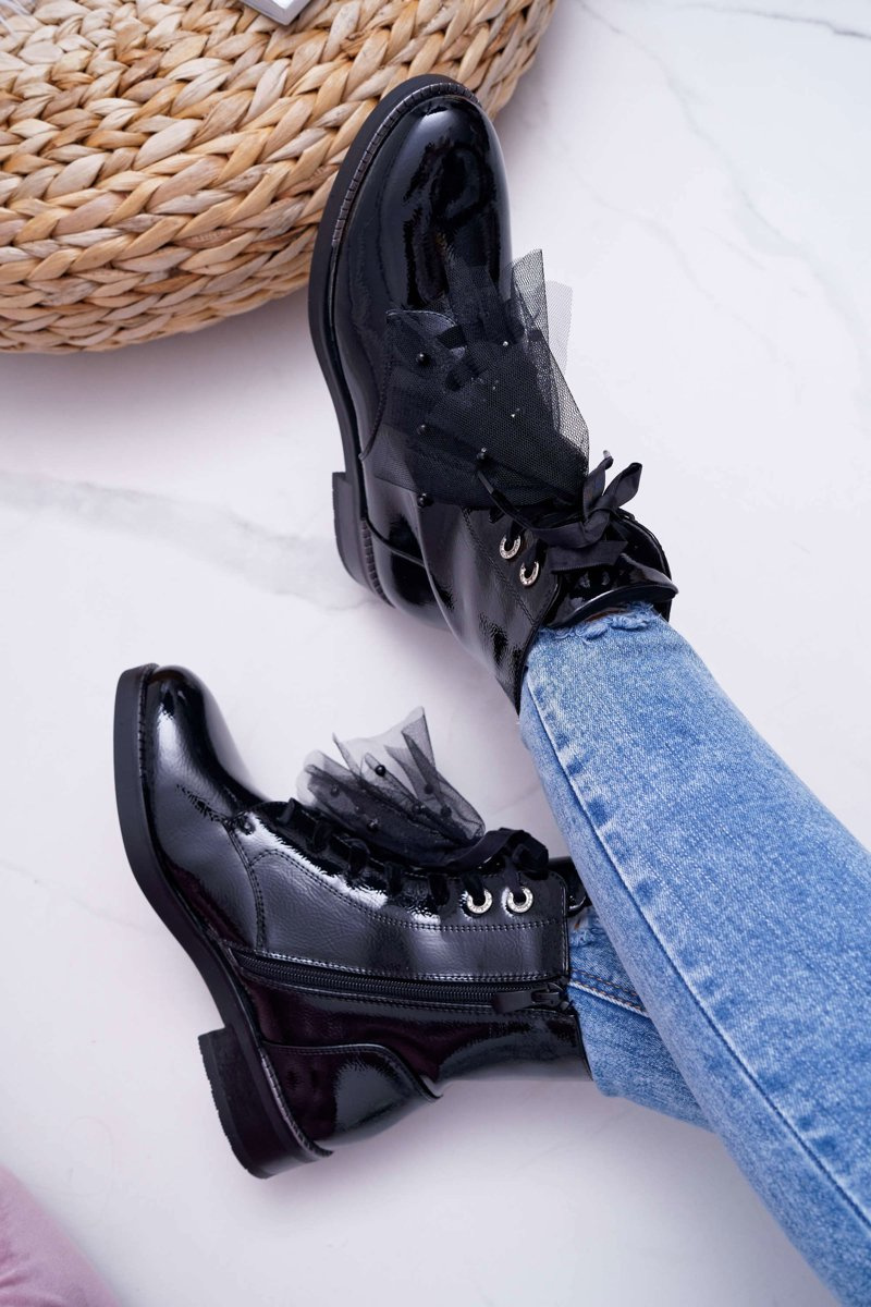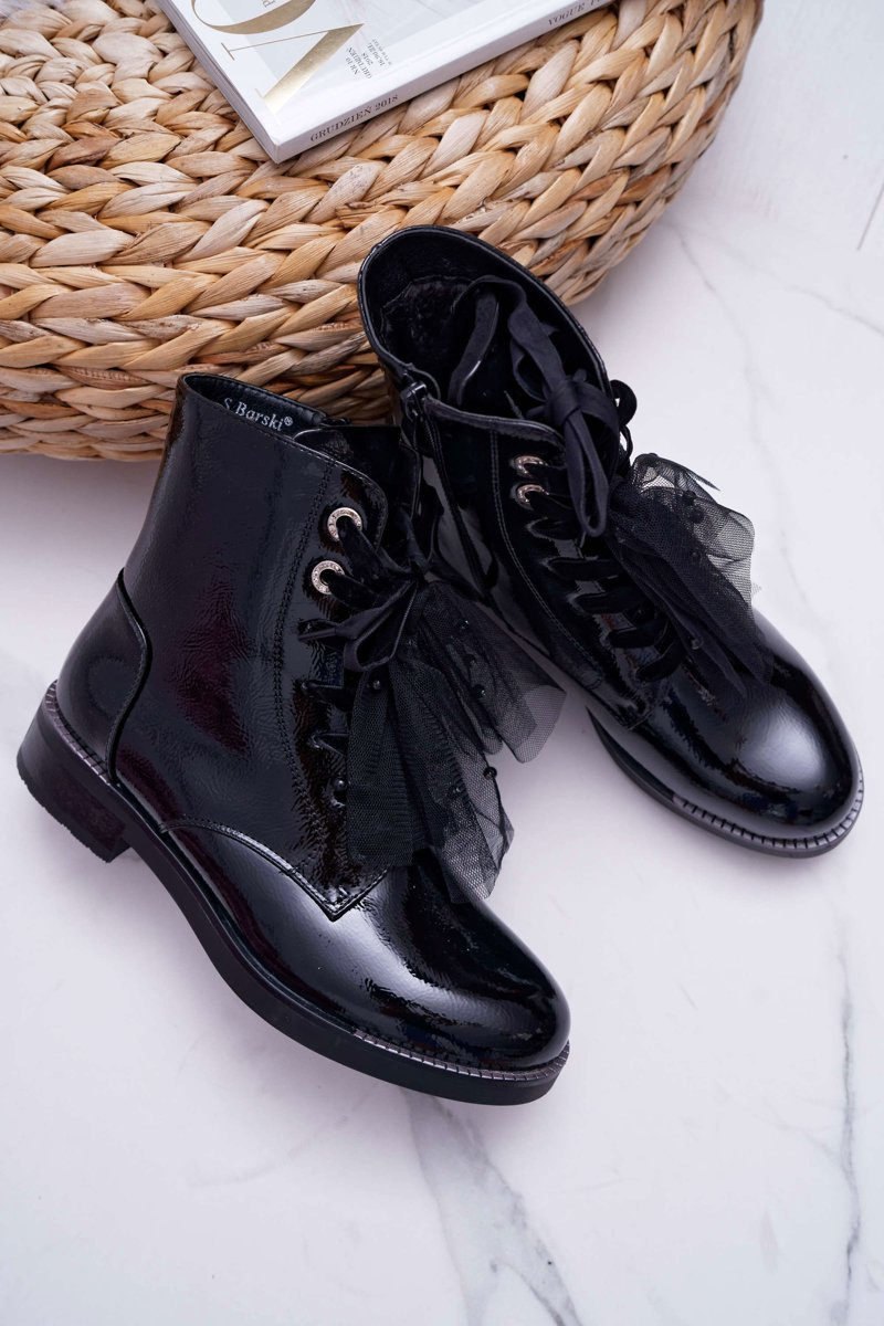 Elegantní boty S.BARSKI v černé barvě. Vyrobeno z vysoce kvalitní ekologické kůže. Jsou zatepleny textilní podšívkou s chloupkem. Zdobení mašlí na šněrování. Při výběru si zkontrolujte tabulku velikostí.