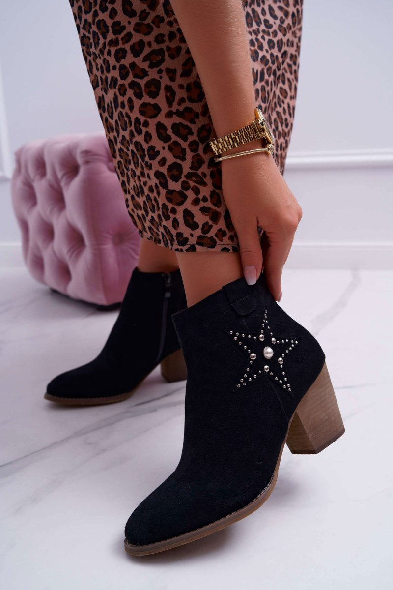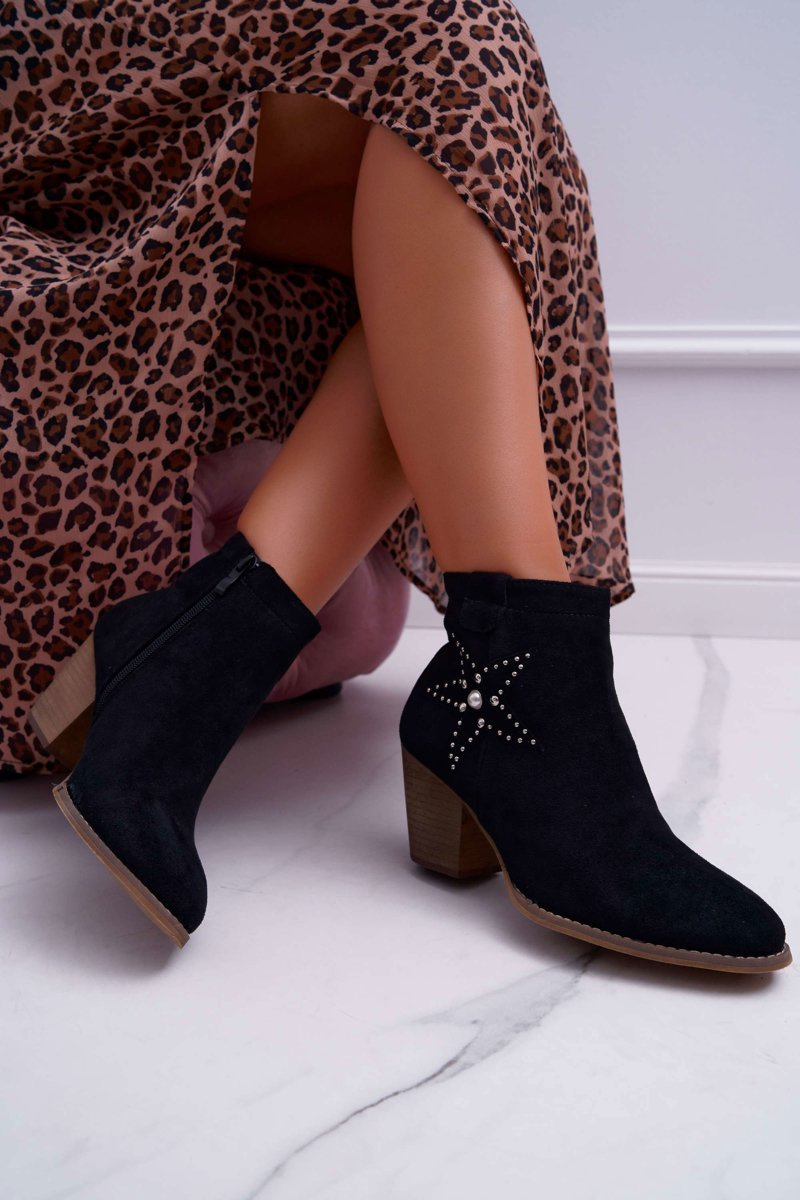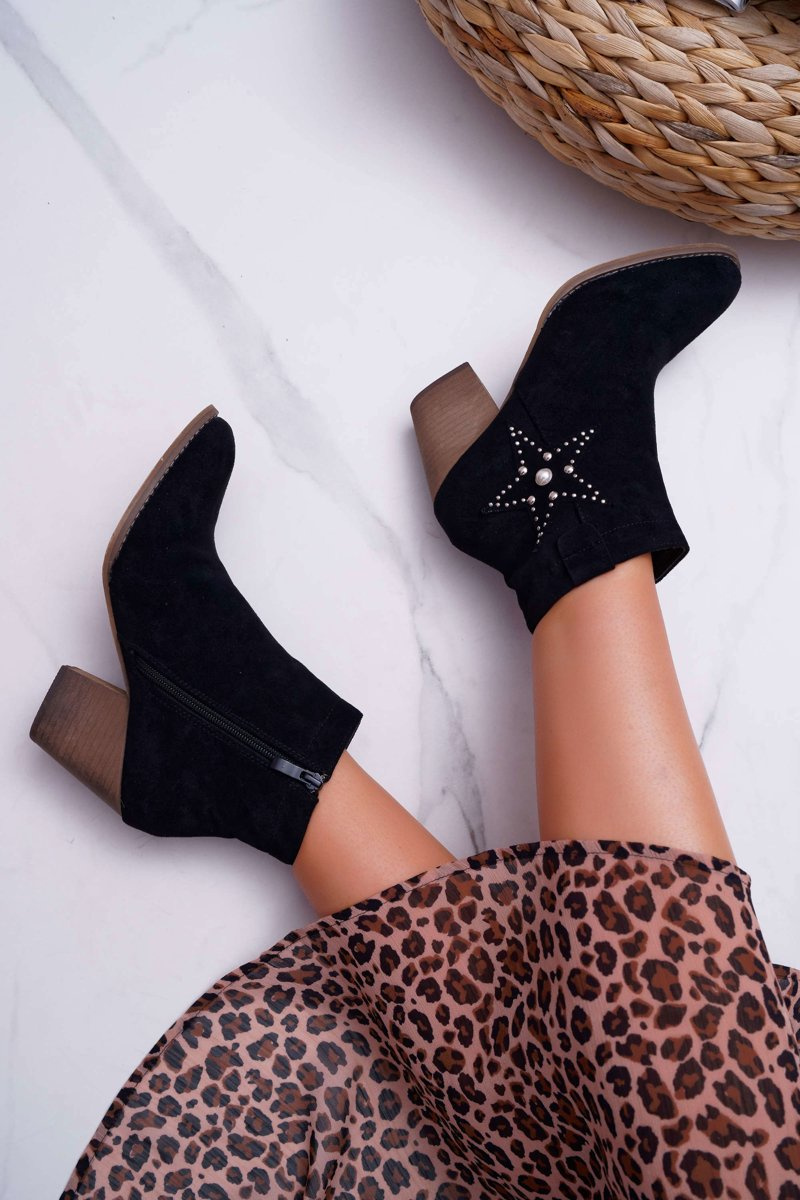 Unikátní kovbojské boty, které jsou ideální pro podzimní otfit. Zip na boku usnadňuje nazouvání. Svršek z ekologického semiše. Mají zdobení na straně ve formě hvězdy z flitrů. Při výběru si zkontrolujte tabulku velikostí.