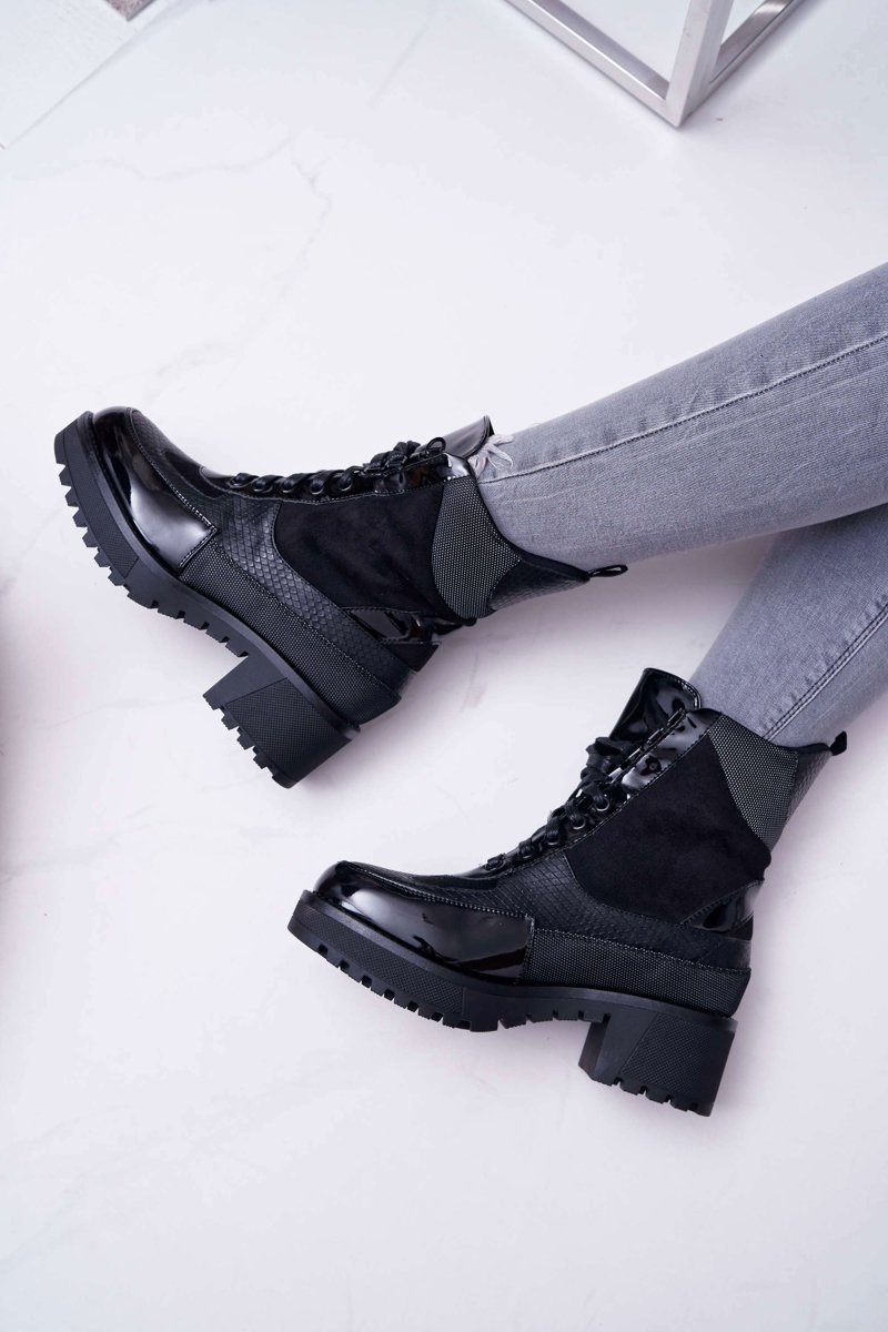 Skvělé traperky vyrobené z eko kůže v kombinaci s ekosemišem. Vnitřek je zateplen textilní podšívkou. Nadčasový design s traktorovým vzorem na hrubé podrážce. Perfektní za všech povětrnostních podmínek! Při výběru si zkontrolujte tabulku velikostí.