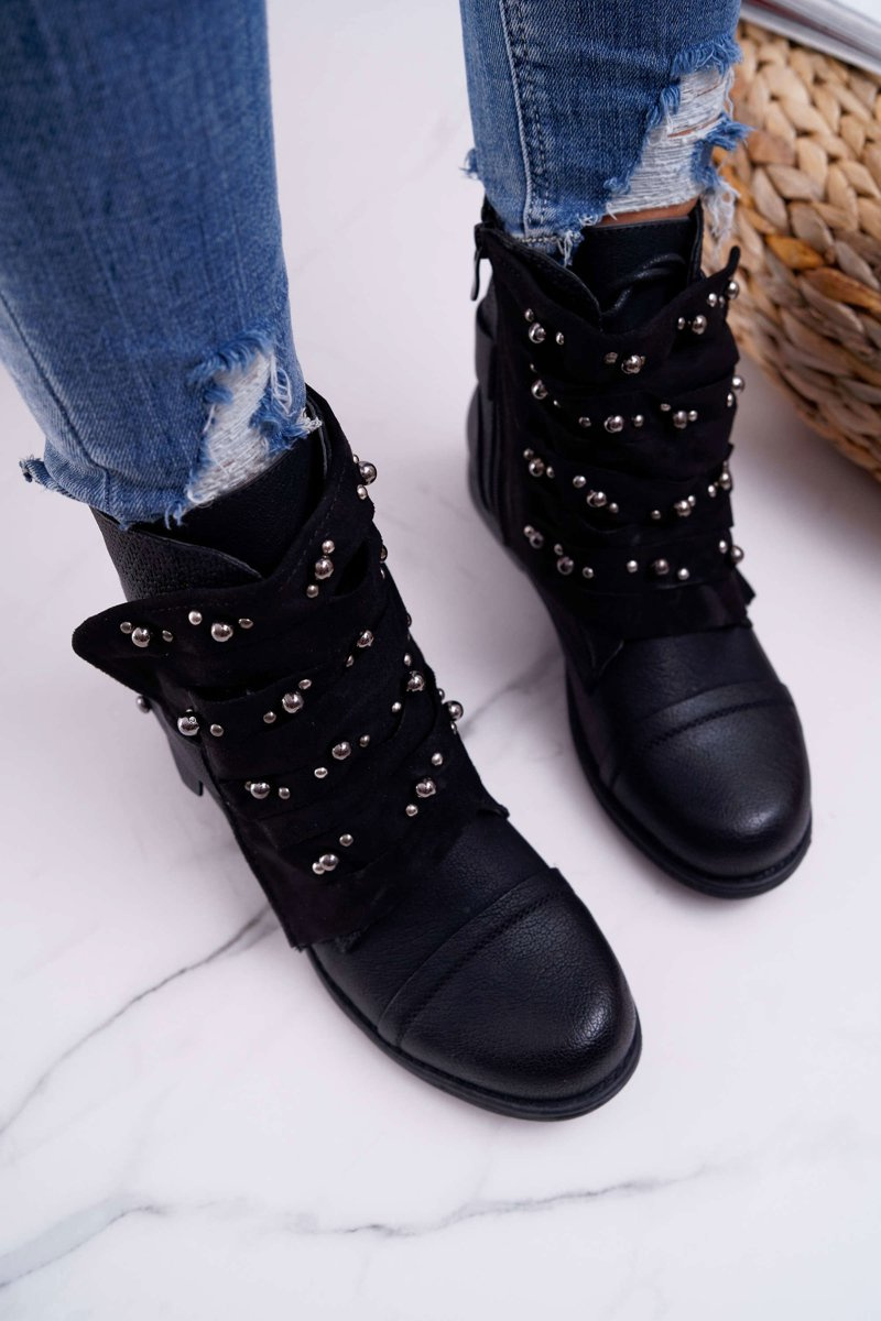 Extrémně pohodlné a módní boty. Klasický vzor zdobený stříbrnými cvoky svršku. Boty na nízkém podpatku, které dokonale ladí s mnoha outfity. Boční zip usnadňuje nazouvání. Při výběru si zkontrolujte tabulku velikostí.