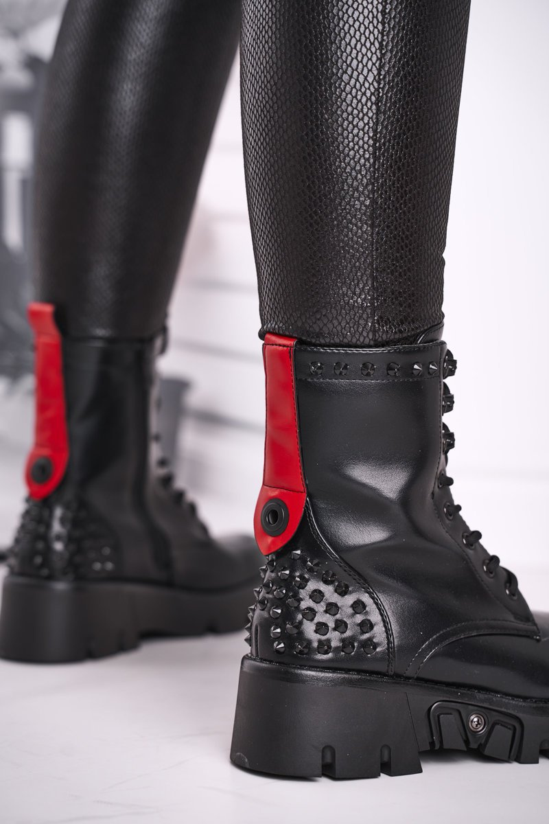 Hledáte trochu silnější styl? Takže jste na správném místě, protože tyto boty splňují všechny vaše požadavky. Pevná vysoká platforma s černými tryskami a charakteristickým ornamentem na podrážce. Co jiného mohu přidat? Klasický střih se šněrováním a zapínáním na zip na boku svršku. Interiér je pokryt teplou a na dotek příjemnou dekou. Při výběru velikosti použijte tabulku velikostí.