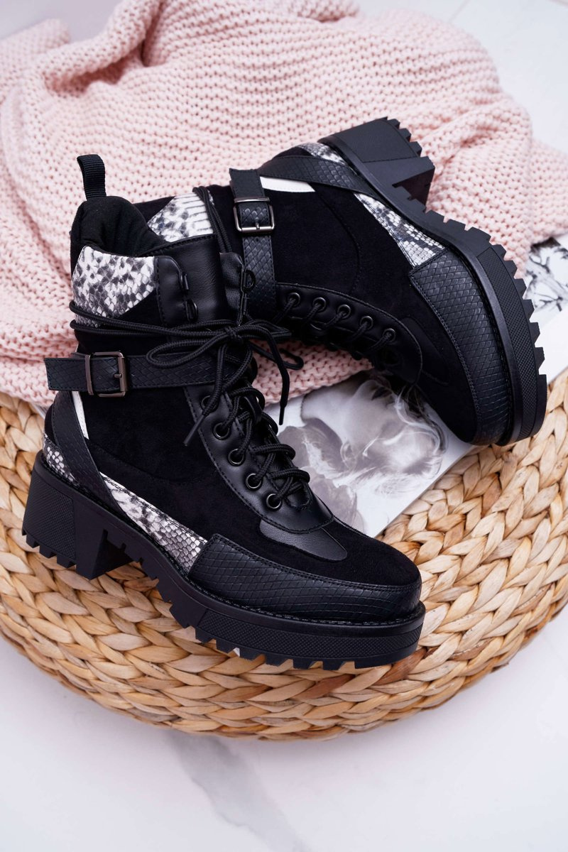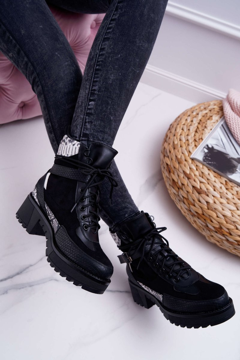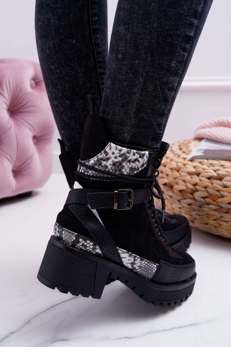 Dámské Kotníkové Boty Hadí vzor černé Nemtere