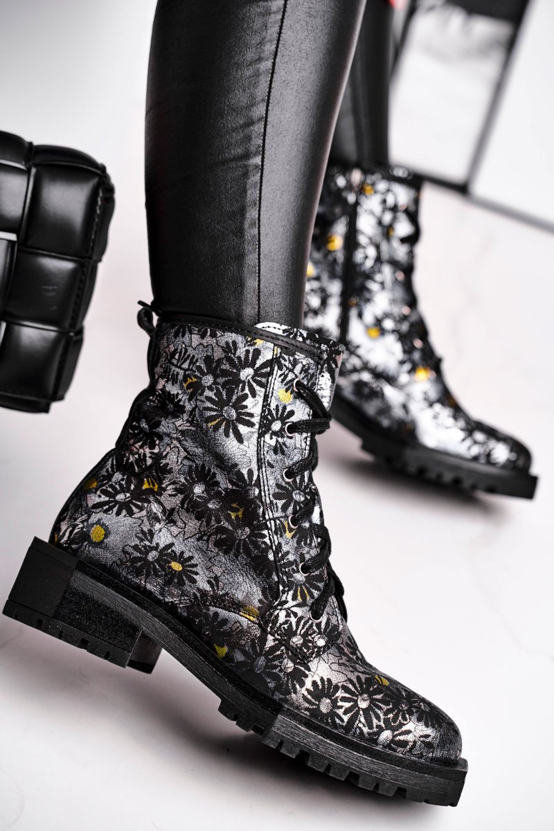 Společnost Maciejka se svými produkty vždy vynikla. Nejnovější kolekce bot je toho potvrzením! Svršek je vyroben z přírodní kůže zdobený krásnými stříbrnými květy. Klasické šněrování a zip na vnitřní straně svršku. Lichoběžníková čtvercová podrážka vypadá skvěle a určitě vynikne! Při výběru velikosti použijte tabulku velikostí.