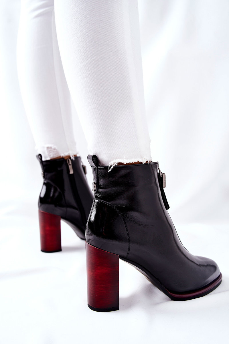 Dámské kotníkové boty lakovane černé na klinu Cofton
