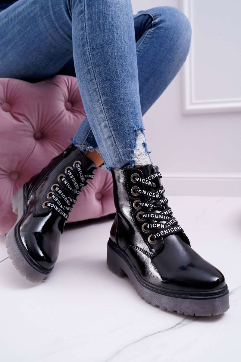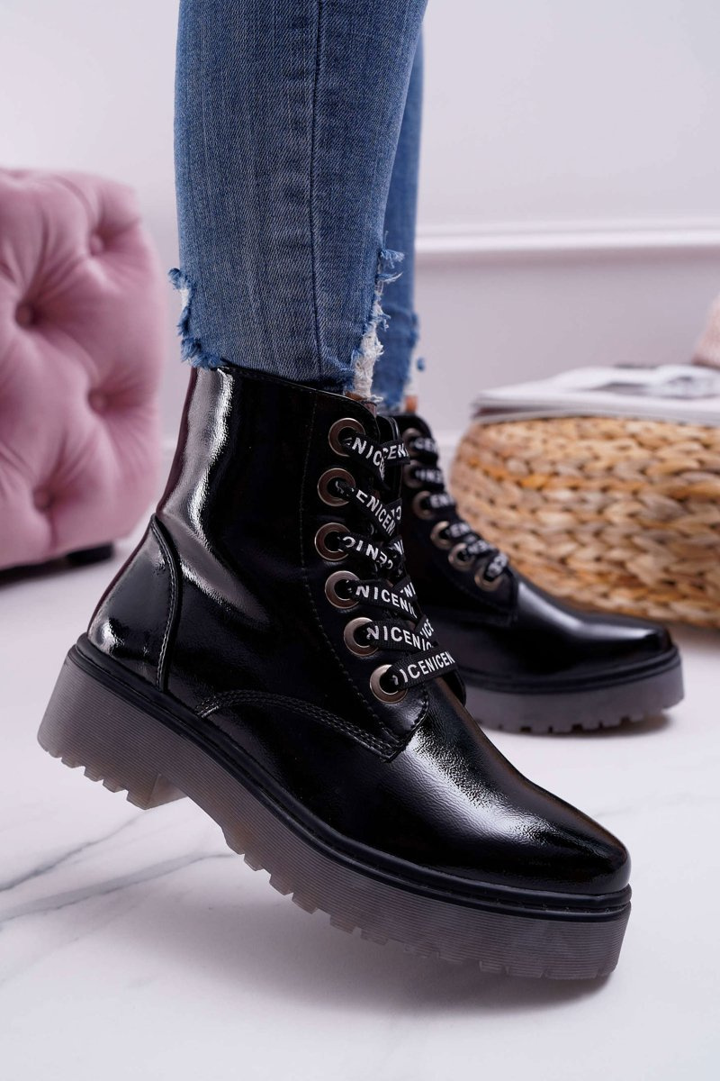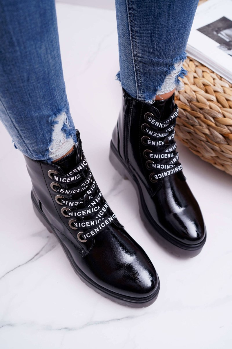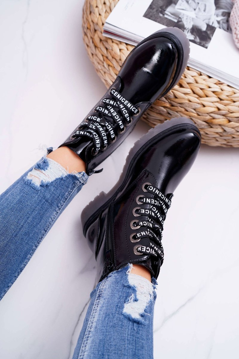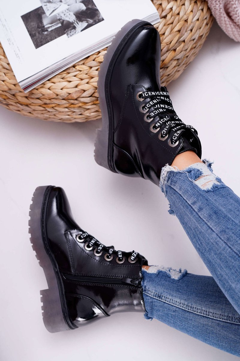 Dámské Kotníkové Boty Lakované Černé Sergio Leone TR726
