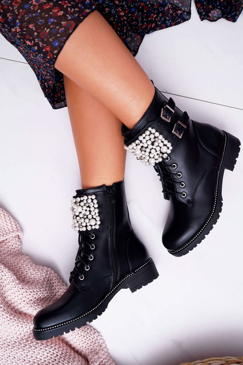Pokud jste zde, znamená to, že hledáte módní a pohodlnou obuv pro chladné dny. Hrubá podrážka s krásnou ozdobou v podobě perel a zirkonů. Možnost lepšího upevnění díky použití tkaniček, které jsou zčásti skryté pod klopou s perlami, která vytváří také skvělou ozdobu. Vnitřek je pokryt na dotyk příjemným plyšem. Chceme dát ženám důvod ke koupi nových bot a tyto boty jsou jedním z nich! Při výběru si zkontrolujte tabulku velikostí.
