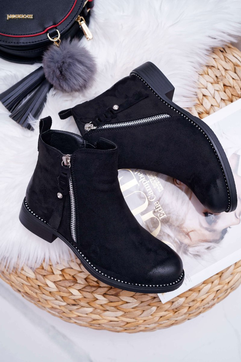 Dámské kotníkové boty na nízkém podpatku Černé Barski 98-20