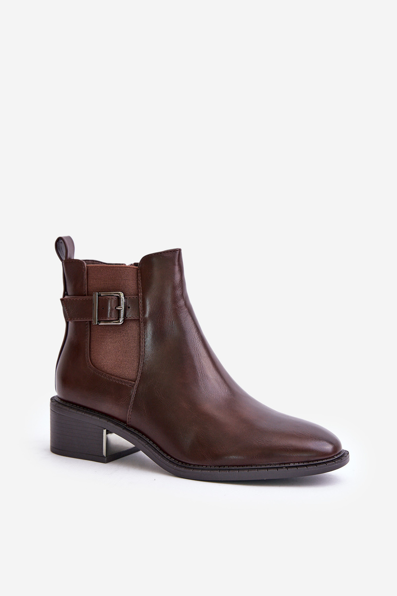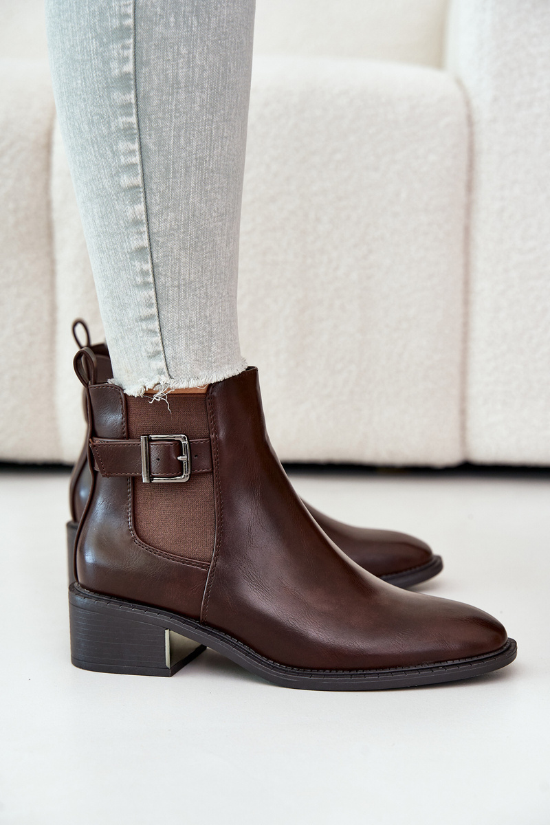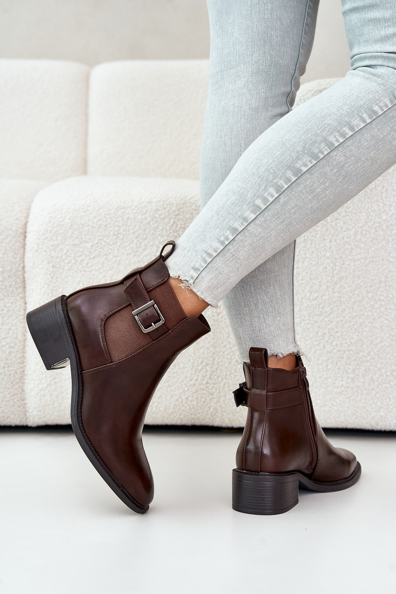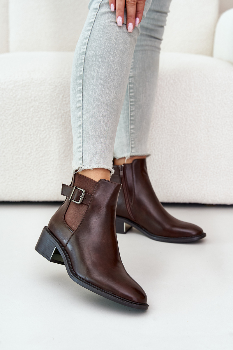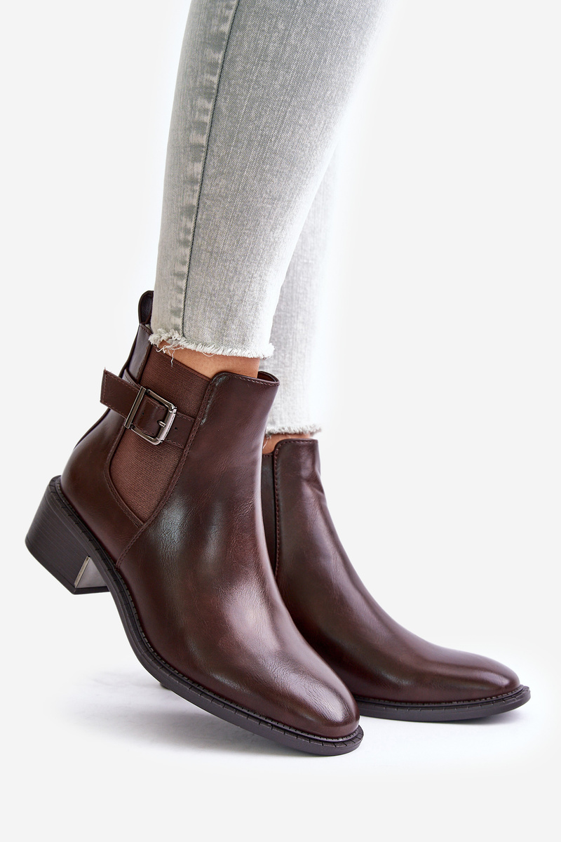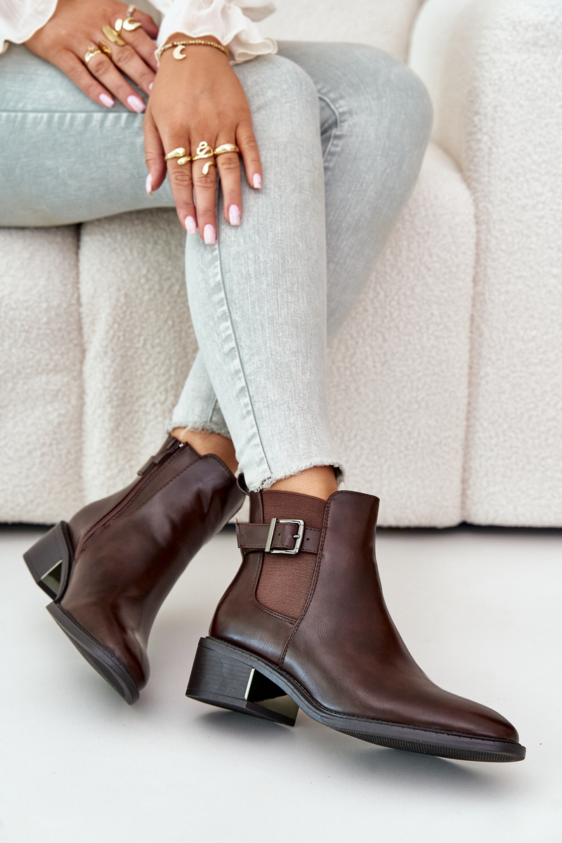 Dámské Kotníkové Boty Na Nízkém Podpatku Se Zlatou Sponou Hnědé Vomera