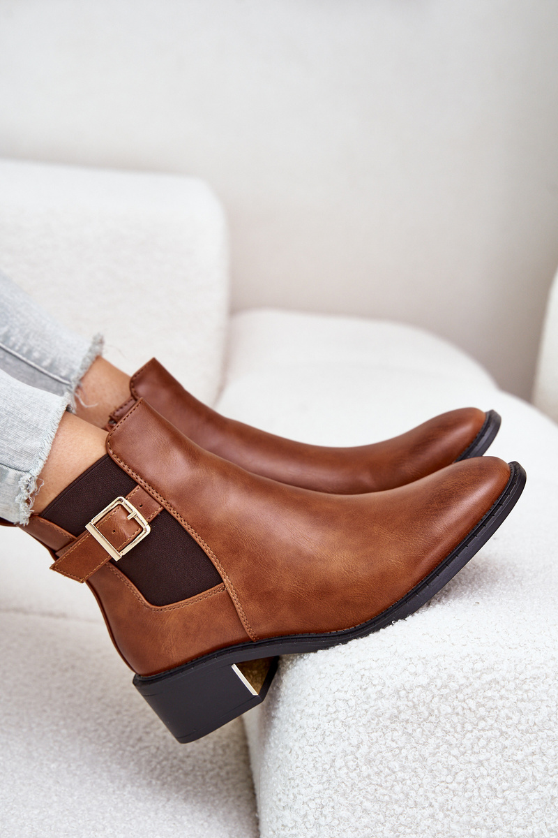 Dámské kotníkové boty na nízkém podpatku se zlatou sponouCamel Vomera