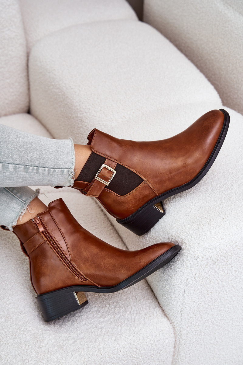 Dámské boty vyrobené z eko kůže. Usazeny na nízkém podpatku. Uvnitř zateplené obuvnickým rounem, což zajistí teplo v chladnějších dnech. Špičky jsou zaoblené. Zapínání na zip. Na svršku je pásek se zlatou sponou. Klasický střih umožňuje, abyste je sladily s mnoha stylizacemi! Při výběru velikosti se řiďte tabulkou velikostí.