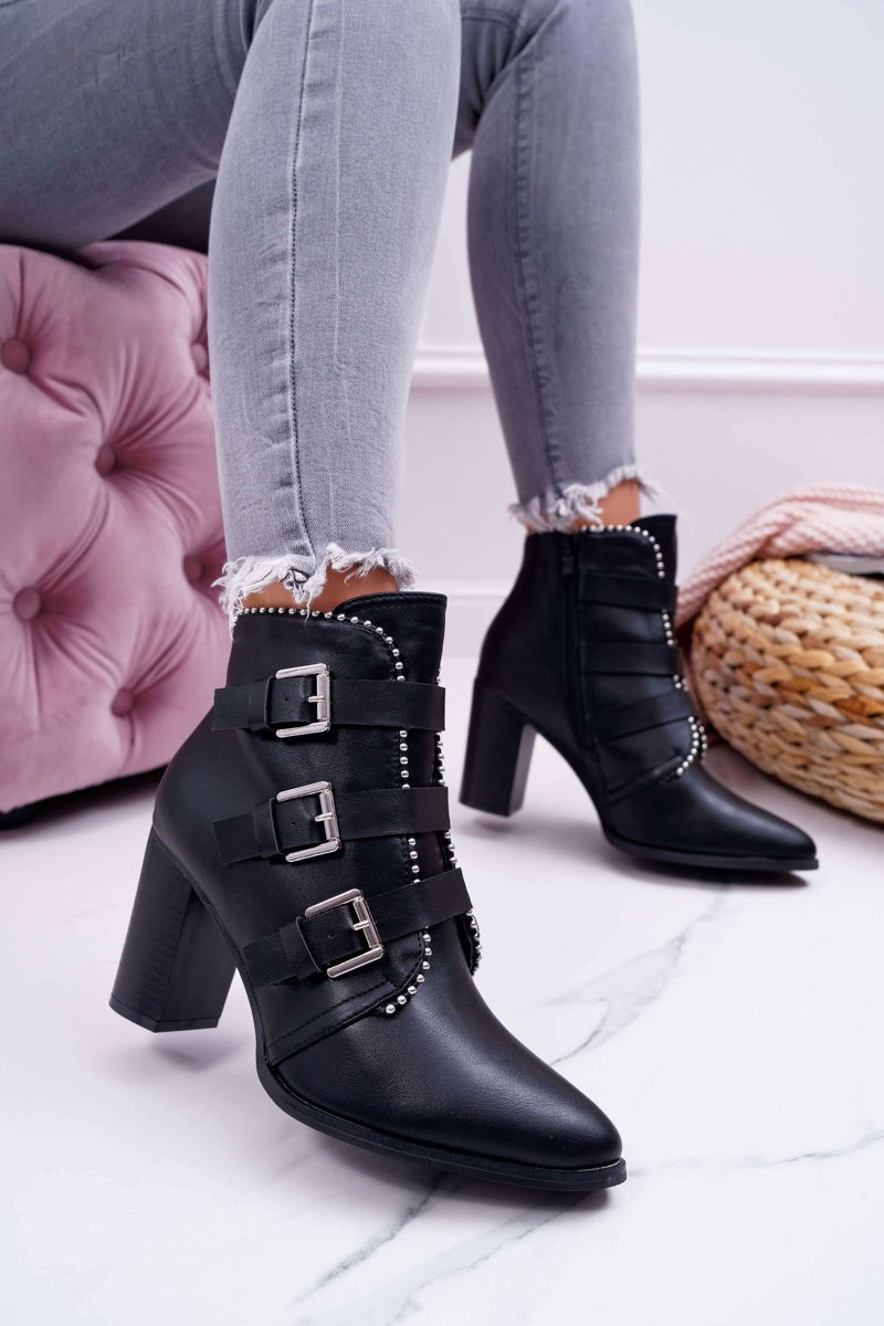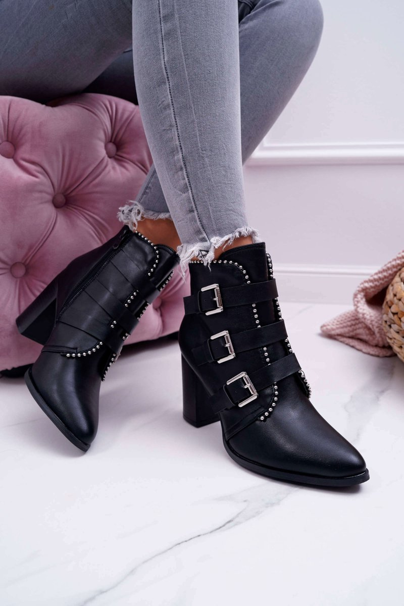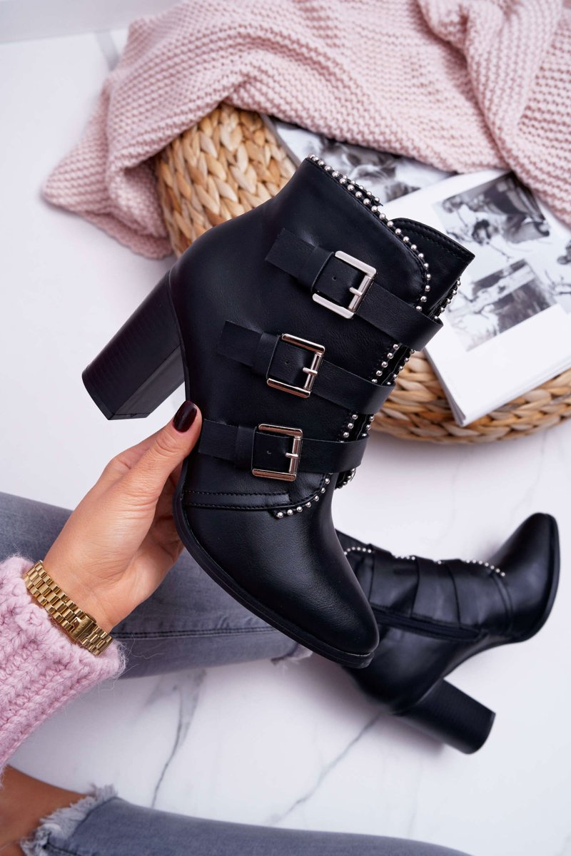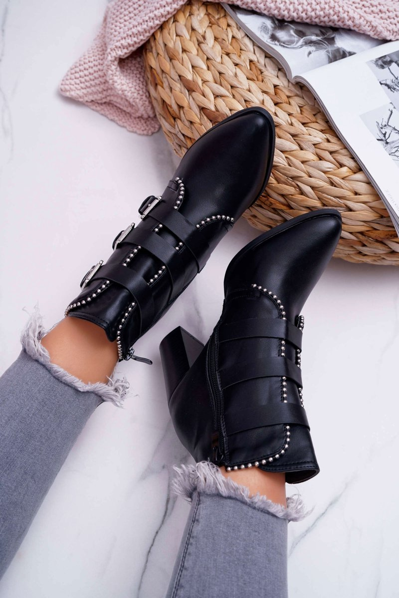 Boty na podpatku vyrobené z ekologické kůže, které v kombinaci s módním podpatkem. Zdobení ve formě funkčních přezek. Boční zip usnadňuje nazouvání. Při výběru si zkontrolujte tabulku velikostí.