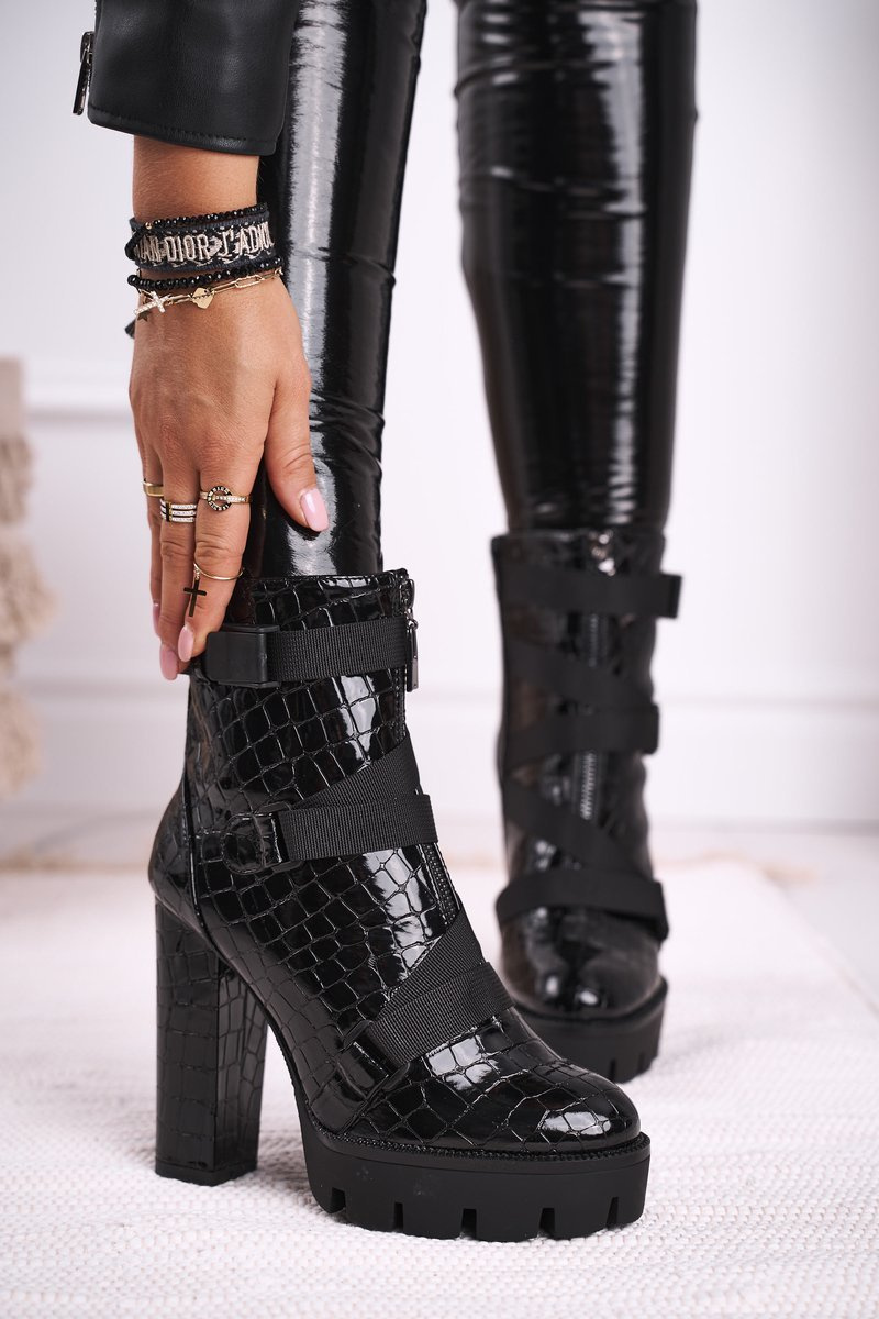 Exkluzivní dámské boty! Vyrobeno z ekologické kůže. Zdobené gumovými manžetami. Zapínání na zip. Namontováno na vysokém sloupku. Zahřátý jemnou přikrývkou na boty. Získejte trochu mimořádný vzhled! Při výběru si zkontrolujte tabulku velikostí.
