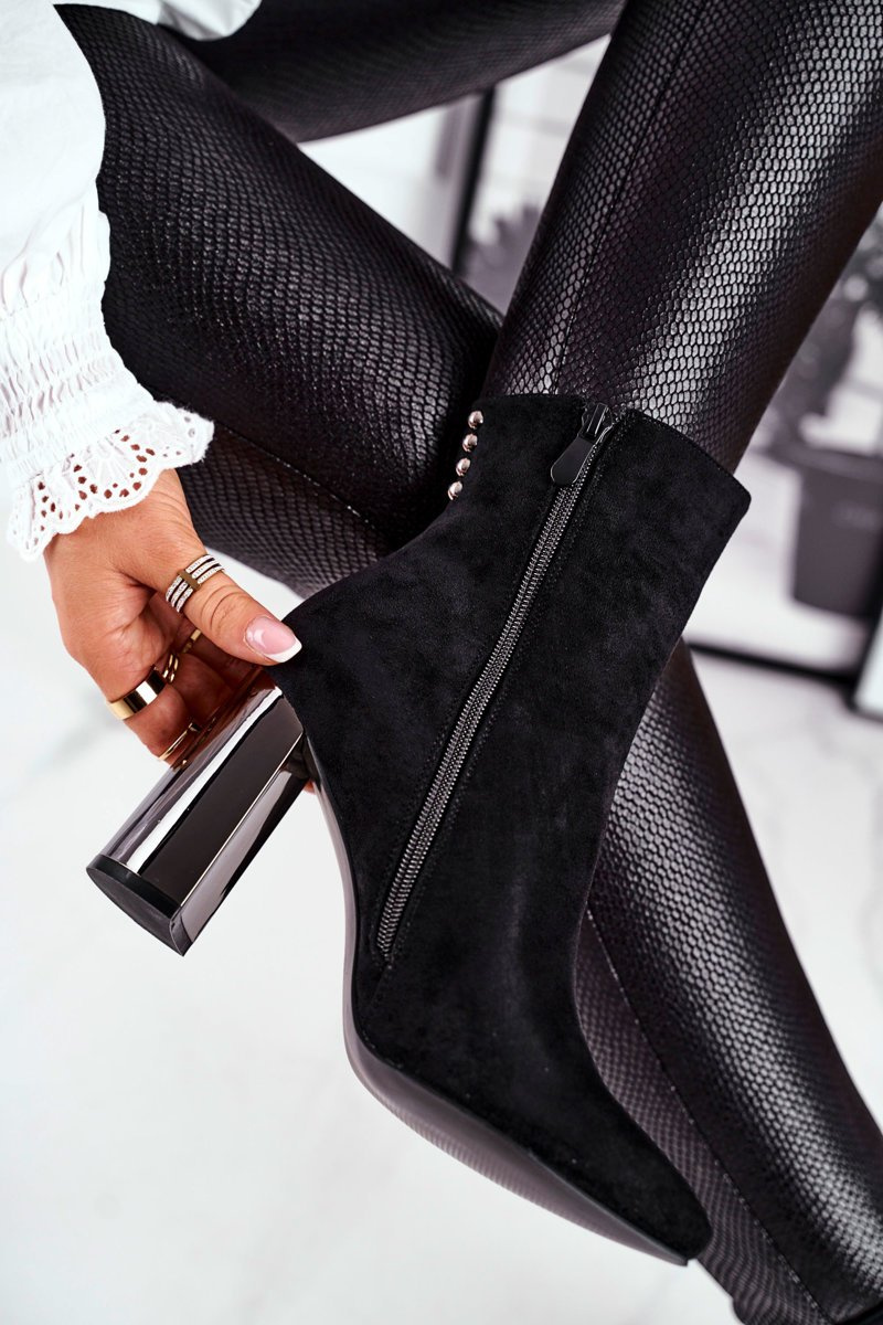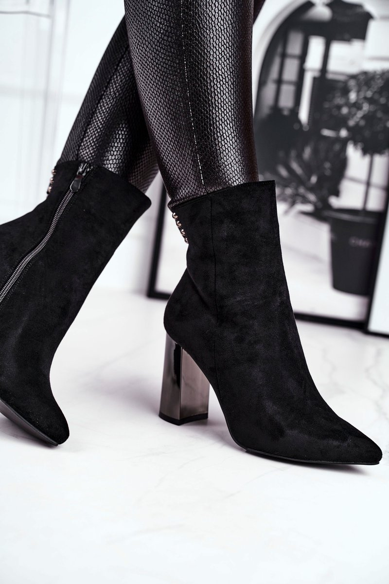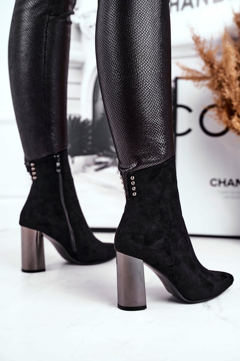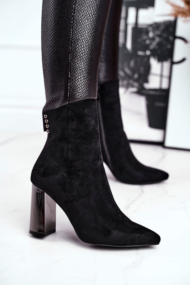 Naší novinkou jsou černé boty vyrobené z eko semiše, příjemné na dotek a se zrcadlovým podpatkem. Stabilní sloupek a otevírání na zip zajistí pohodlí při používání. Moucha v horní části se přizpůsobí jakékoli šířce, takže je vynikající volbou pro podzimní nebo jarní použití. Při výběru velikosti použijte tabulku velikostí.