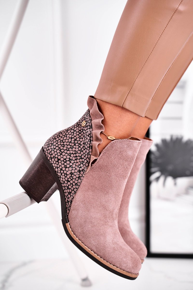 Dámské Kotníkové Boty na Podpatku Kožené Maciejka Béžové 04833-04