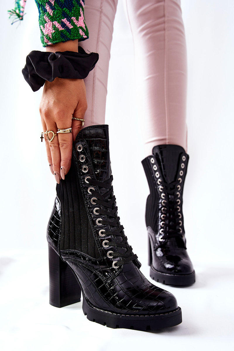 Dámské Kotníkové Boty Na Podpatku Krokodýlí vzor Cerne Erdogan