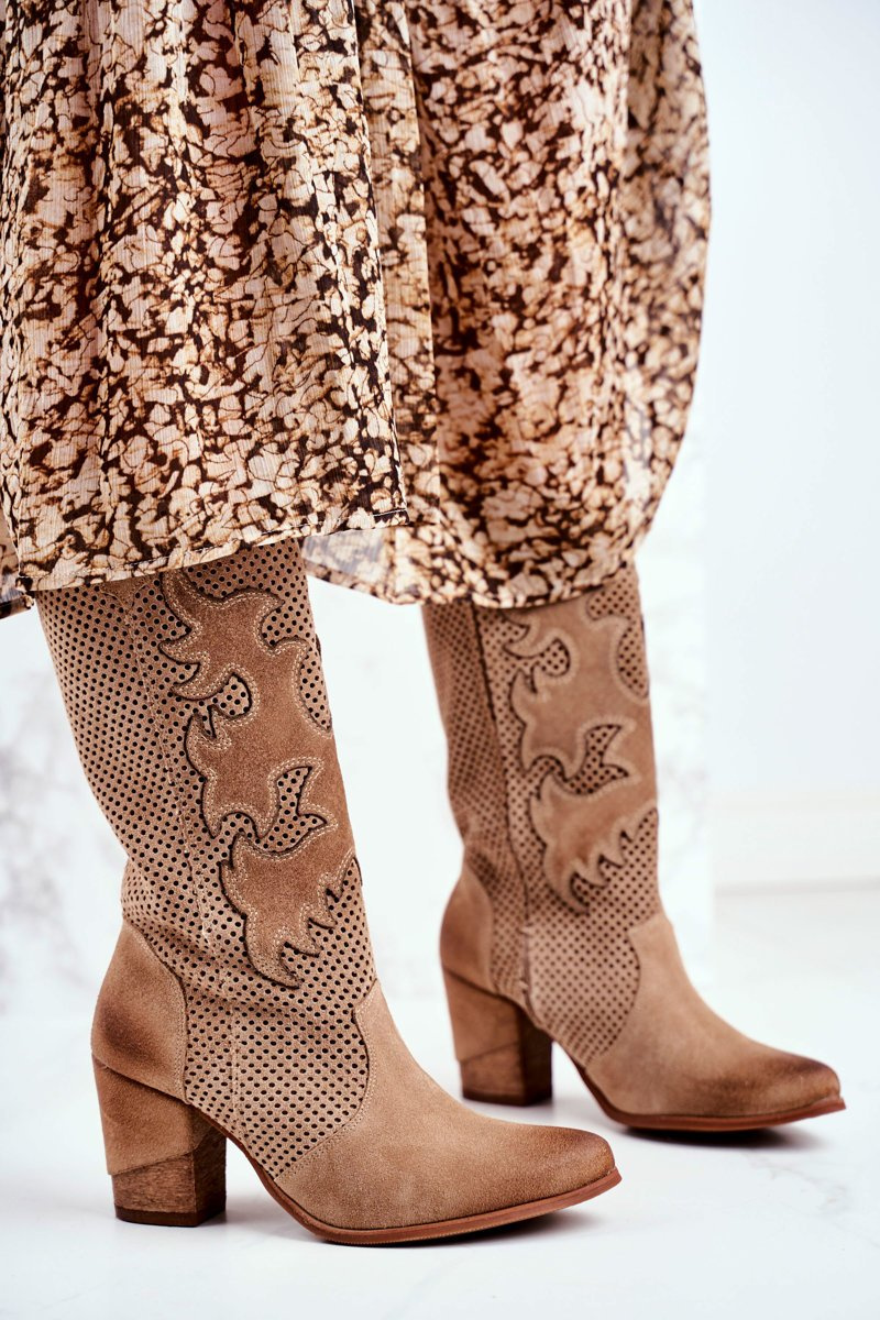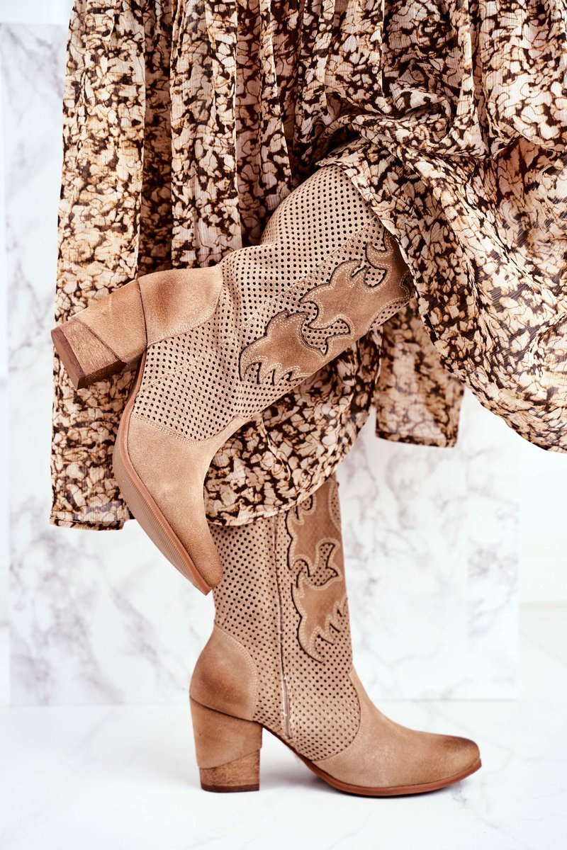 Dámské Kotníkové Boty Na Podpatku Kůže Béžový Vysoký Rosemary