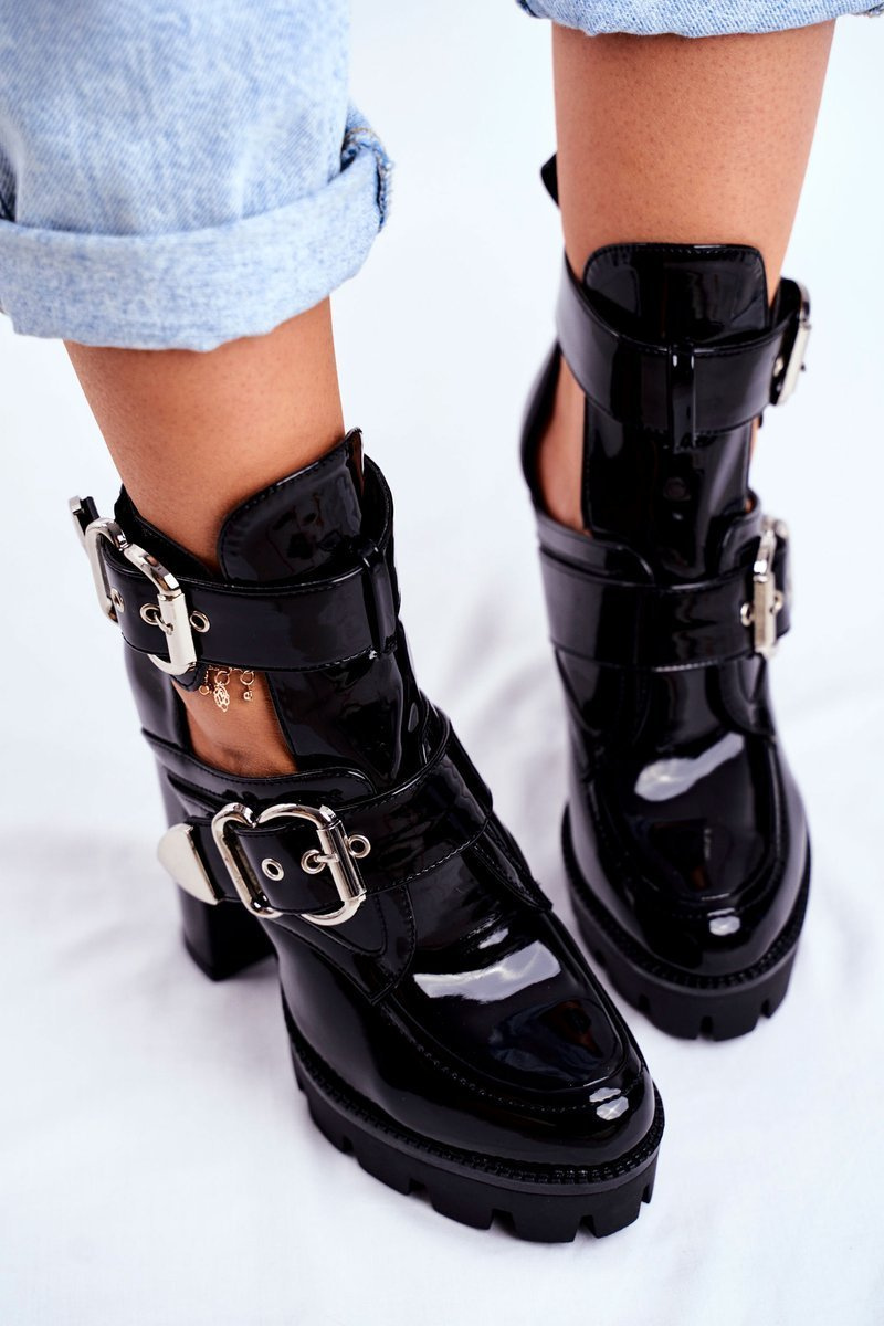 Exkluzivní dámské boty v mírně silnější verzi! Upevnění pomocí dvou velkých stříbrných přezek, vysokého sloupku a 3,5 cm platformy, a to vše v krásné lakované černé barvě <3 Získejte trochu mimořádného vzhledu a ukažte všem, kdo zde vládne ! Při výběru si zkontrolujte tabulku velikostí.