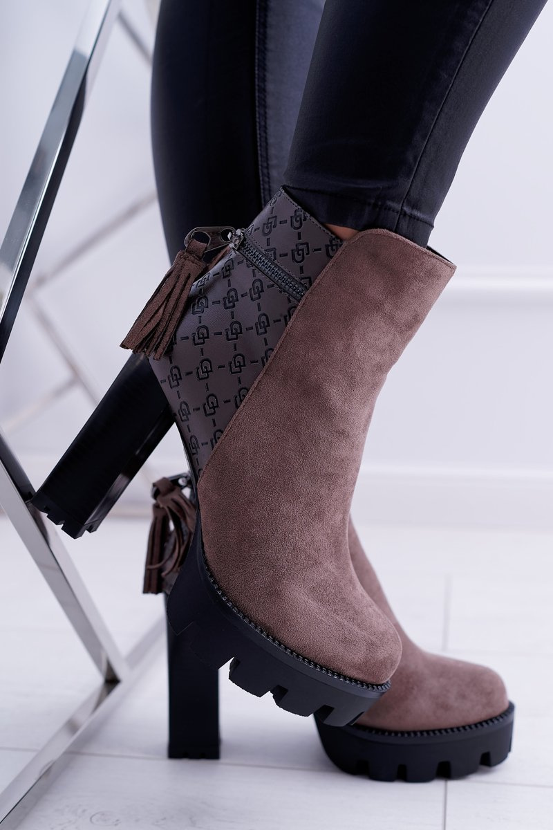 Dámské Kotníkové Boty Na Podpatku Lu Boo Teplé Coffe Milky Way