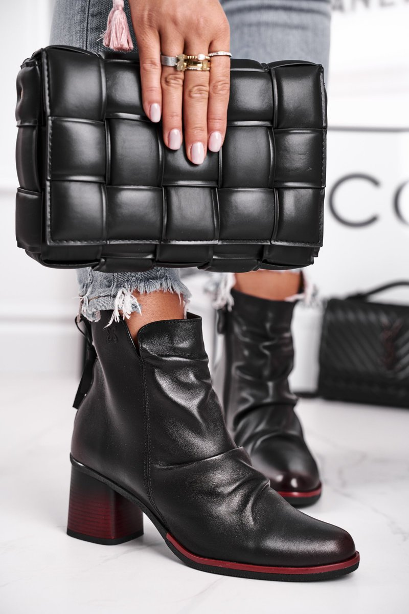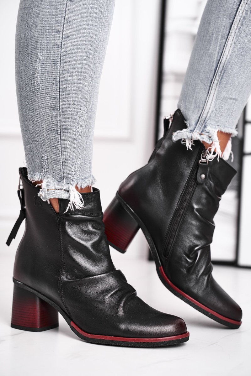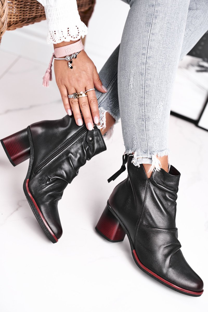 Černé boty nemusí být vůbec nudné! Maciejkovy boty to dokonale potvrzují. Model zcela vyrobený z přírodní kůže v kombinaci s červeným podpatkem vypadá úžasně! Svršek je mírně zvrásněný a má další dekorativní zip. Potěšte ostatní svými stylizacemi a udávejte trendy v této sezóně! Vnitřní zip usnadňuje oblékání. Při výběru velikosti použijte tabulku velikostí.